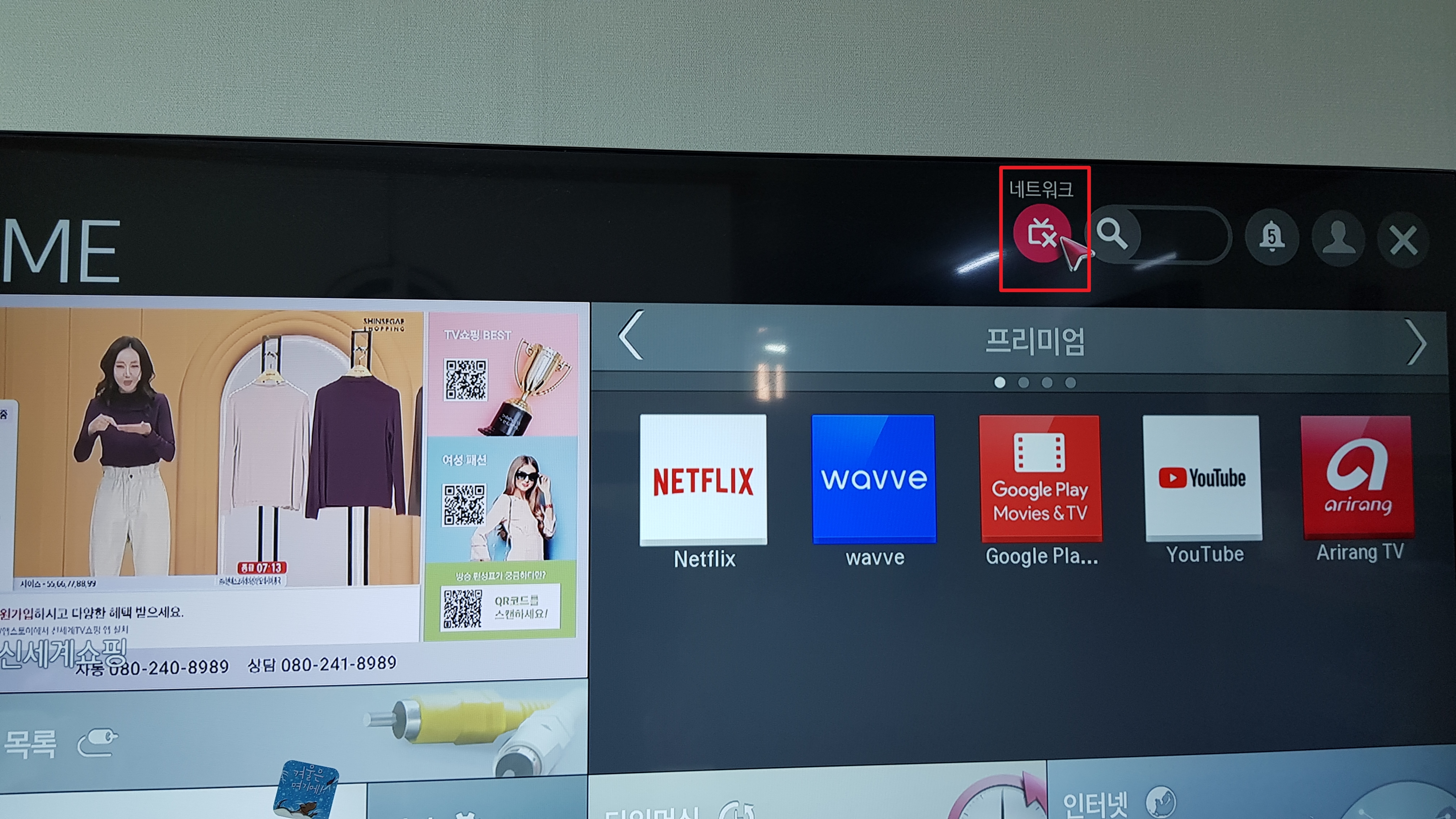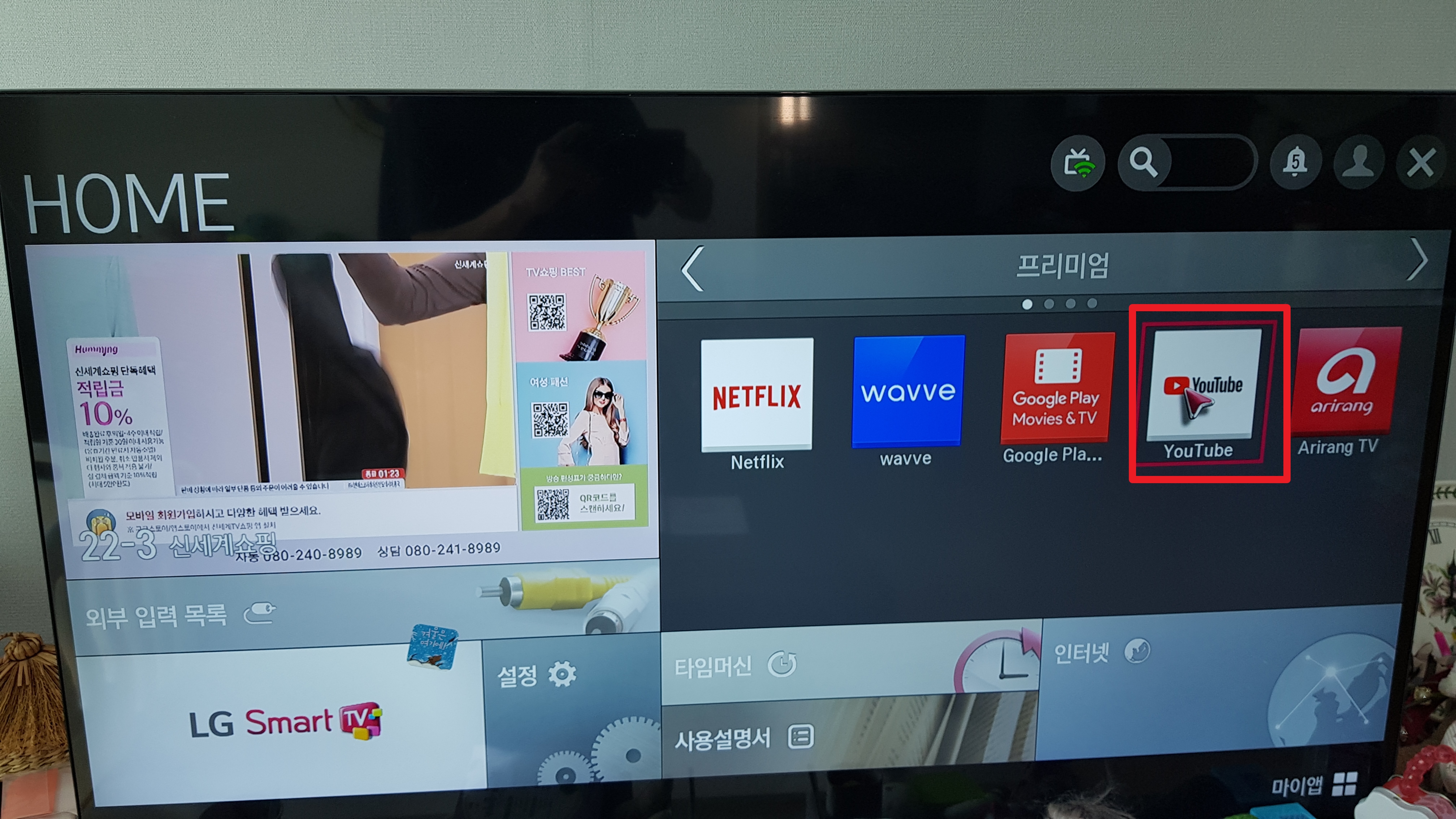 이제 TV에 인터넷이 연결되었으니 유튜브나 넷플리스, 인터넷 웹사이트 연결 다 가능하다.