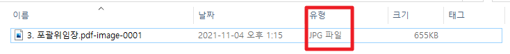 다운로드하기 후 저장된 폴더에 들어가서 파일 확장자명을 보니 이미지(JPG)파일로 잘 변환되어 저장되어있다.
