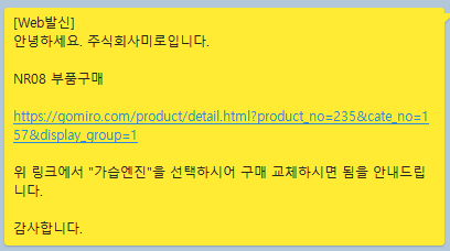 모델명을 확인하고는 문자로 해당모델의 부품을 구매할 수 있는 링크를 보내준다. 링크를 따라 들어가니 미로 홈페이지로 연결되었고 원하는 부품을 선택해서 구매할 수 있도록 되어있다.