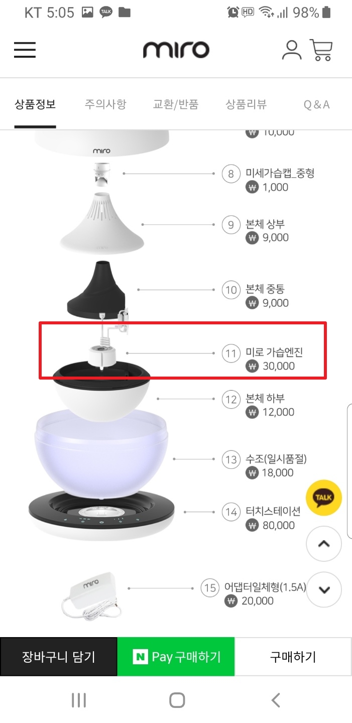 대기가 건조해지기 시작하는 가을부터 겨울, 봄까지는 실내에 적정한 습도유지를 위해서 가습기를 항상 틀어 둔다. 가습기에서 만들어지는 수증기는 코로 흡입해 몸속으로 들어오기에 위생에 많은 신경이 쓰이게 된다. 예전 가습기 살균제 사건을 보고 난 뒤로는 가습기에는 깨끗한 물 외에는 그 무엇도 넣지 않고 세척도 꼼꼼히 자주해준다. 그러기에 가습기를 구매할 때 간편한 것 보다는 번거롭더라도 깨끗하고 완벽하게 세척할 수 있는 제품으로 알아보았고 그래서 구매해서 사용하고 있는 미로 가습기이다. [내돈내산 가습기] 완벽세척 초음파 미로 가습기 내돈내산 구매 사용 후기 & 장단점 분리해서 완벽세척 할 수 있어 안심하고 사용할 수 있지만 그에 따른 단점은 세척에 대한 번거로움과 세척으로 인한 고장을 들 수 있다. 이전 포스팅한 구매 & 사용 후기에서도 단점으로 꼽았던 부분인데 드디어 올 것이 왔다. 핵심부품인 가습엔진의 팬이 고장나서 수증기가 위로 뿜어져 나오지 않는다. 어떻게 고쳐야하는지, AS를 받을 수 있는건지 고객센터에 문의해 보았다.