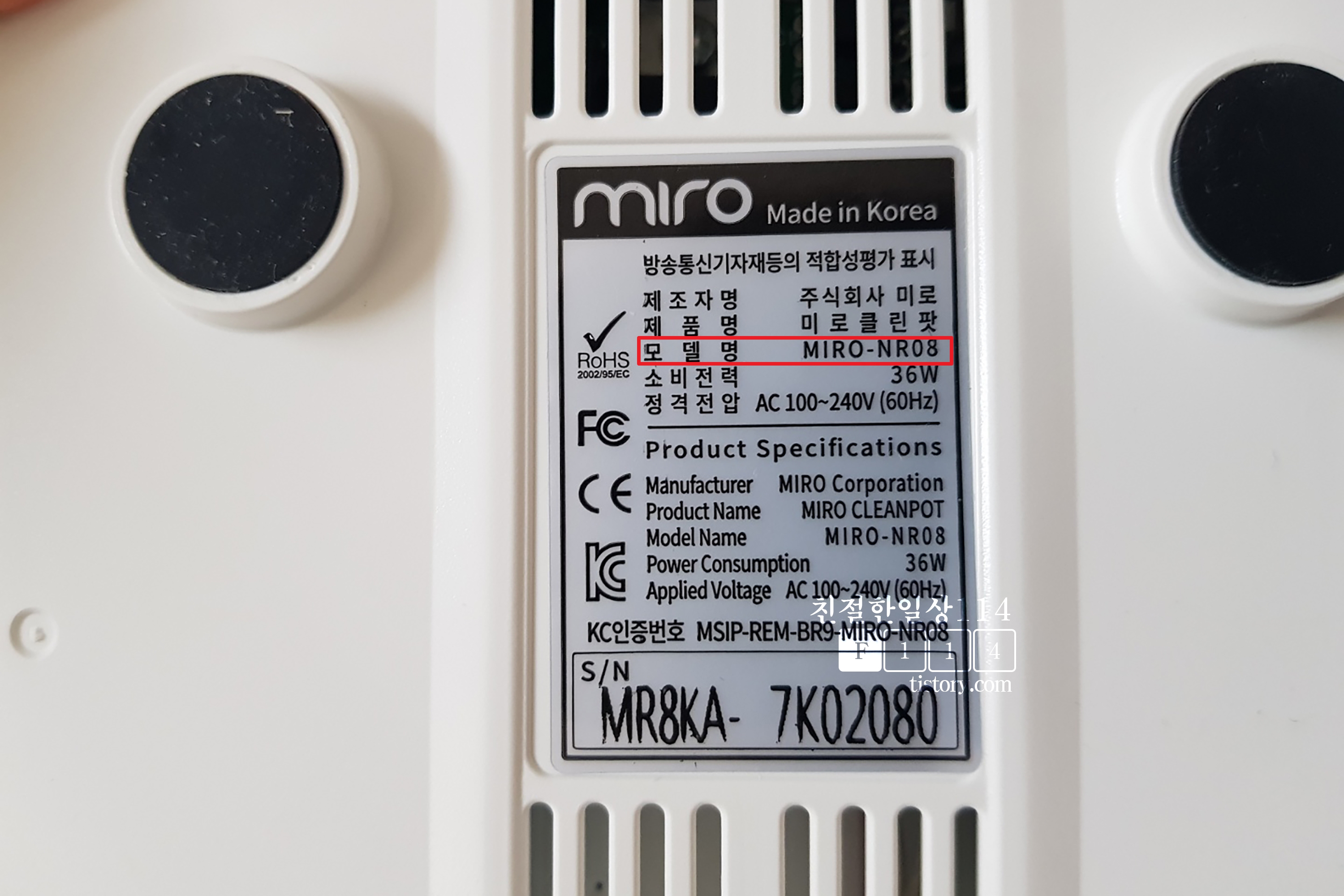 제일 밑에 있는 터치스테이션 뒷부분에 보면 모델명이 있다. 이 제품의 모델명은 'MIRO-NR08'