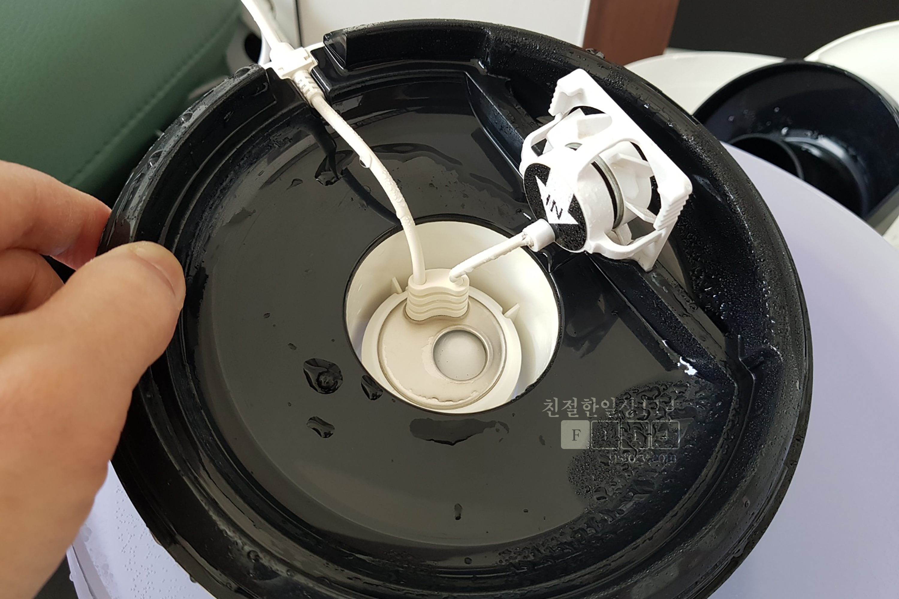 열어보니 가습엔진은 정상적으로 작동이 되어 수증기를 만들어냈지만 팬이 돌아가지 않으면서 수증기가 가습기 내부에 머물러 있다.