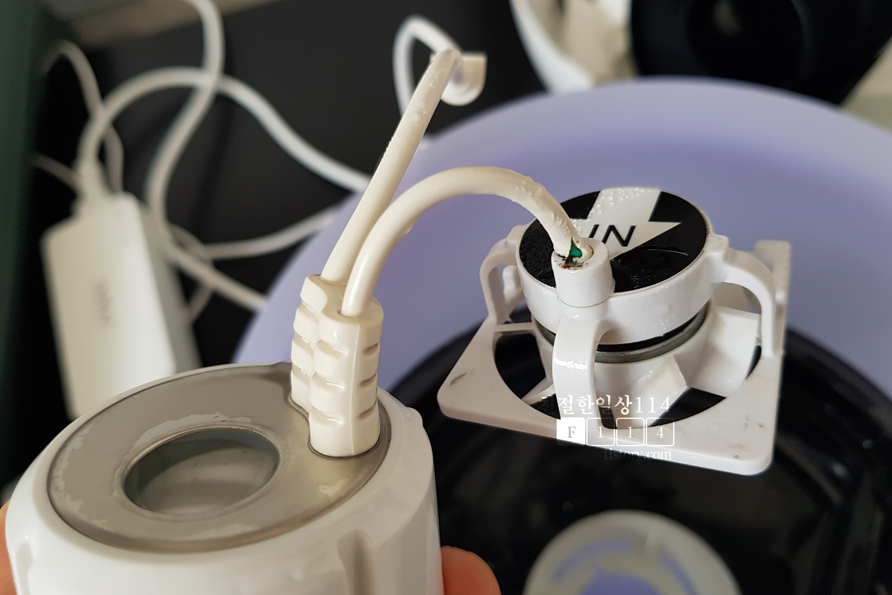 이전 포스팅했던 미로 가습기 구매 사용 후기에서 적었던 단점 2가지가 있었는데 그중 한가지로 약한 재질의 가습엔진 연결전선을 꼽아봤었다.