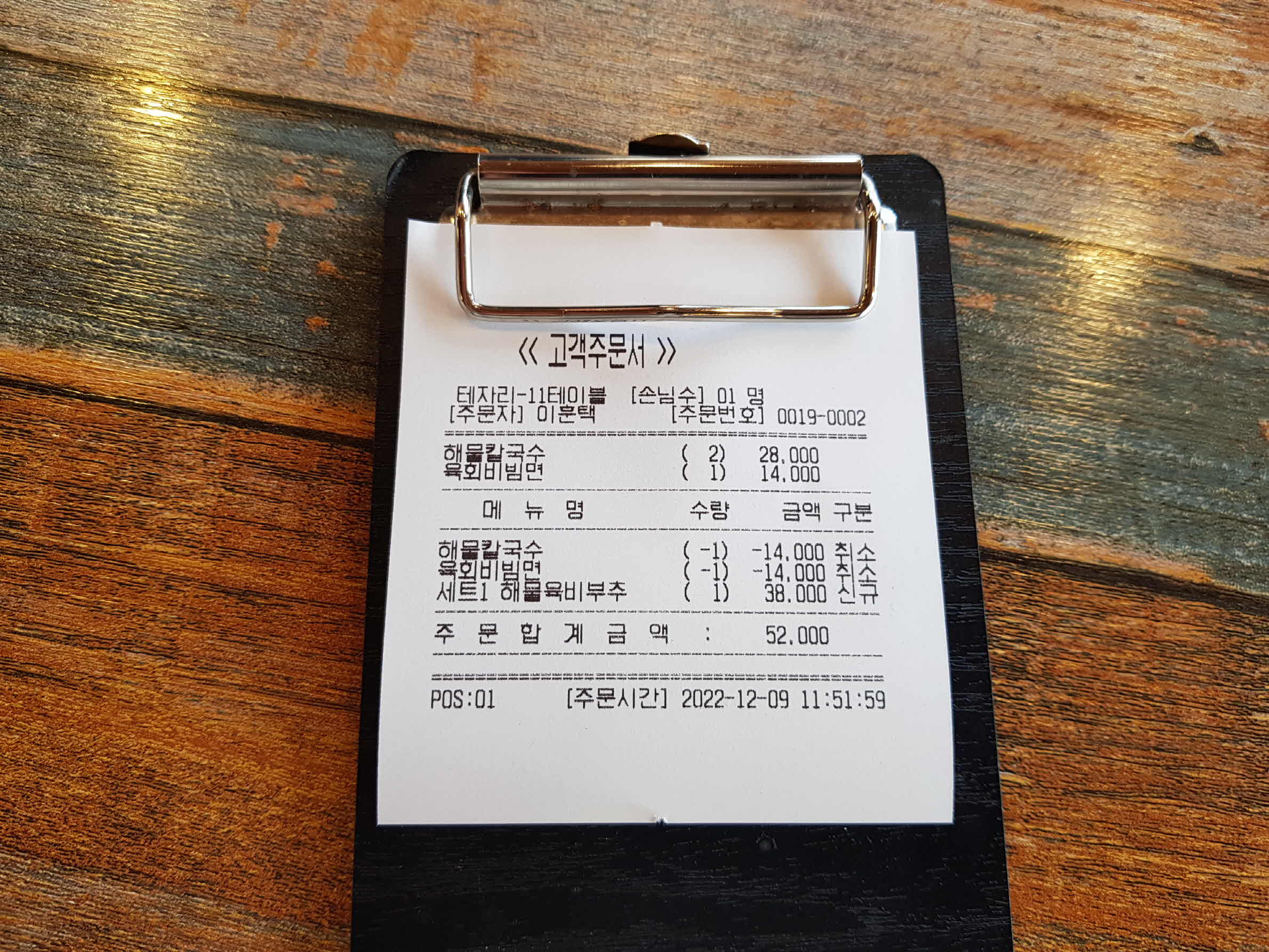 이번 주문은 세트1번에 해물칼국수 1개 추가했다.