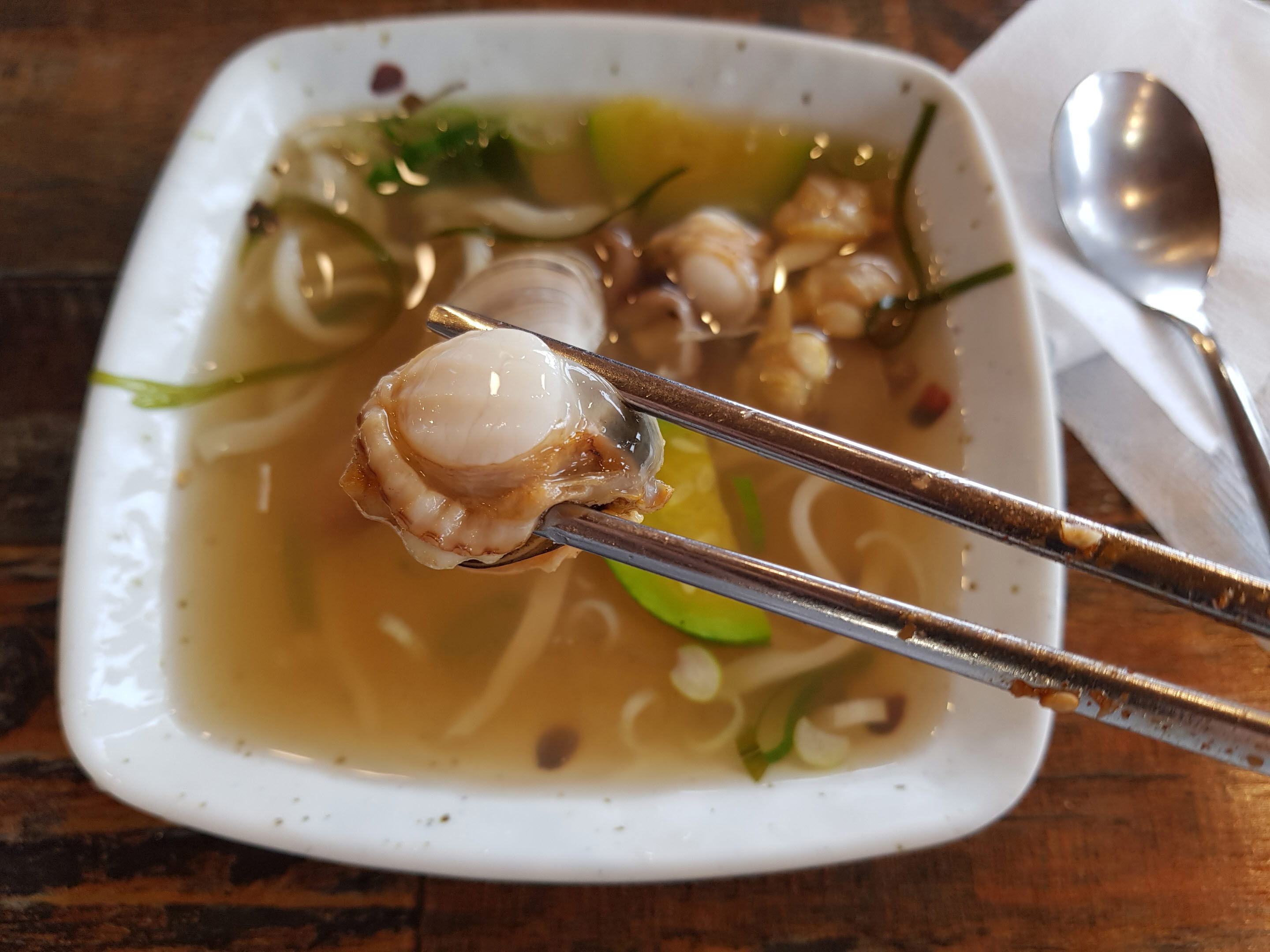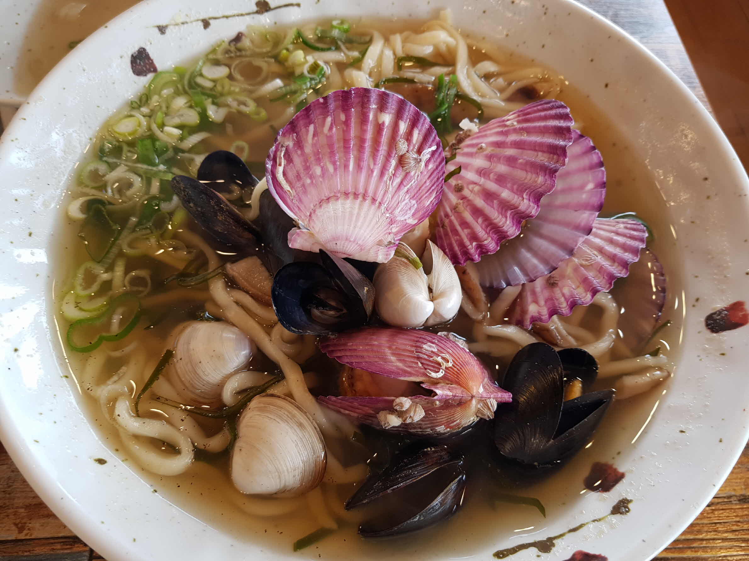 물총이라 불리는 동죽조개와 가리비, 홍합이 듬뿍 들어가 시원하고 담백한 맛이 일품이다. 다만 조개가 많아서 조개 껍질을 골라내는 작업이 오래 걸린다.