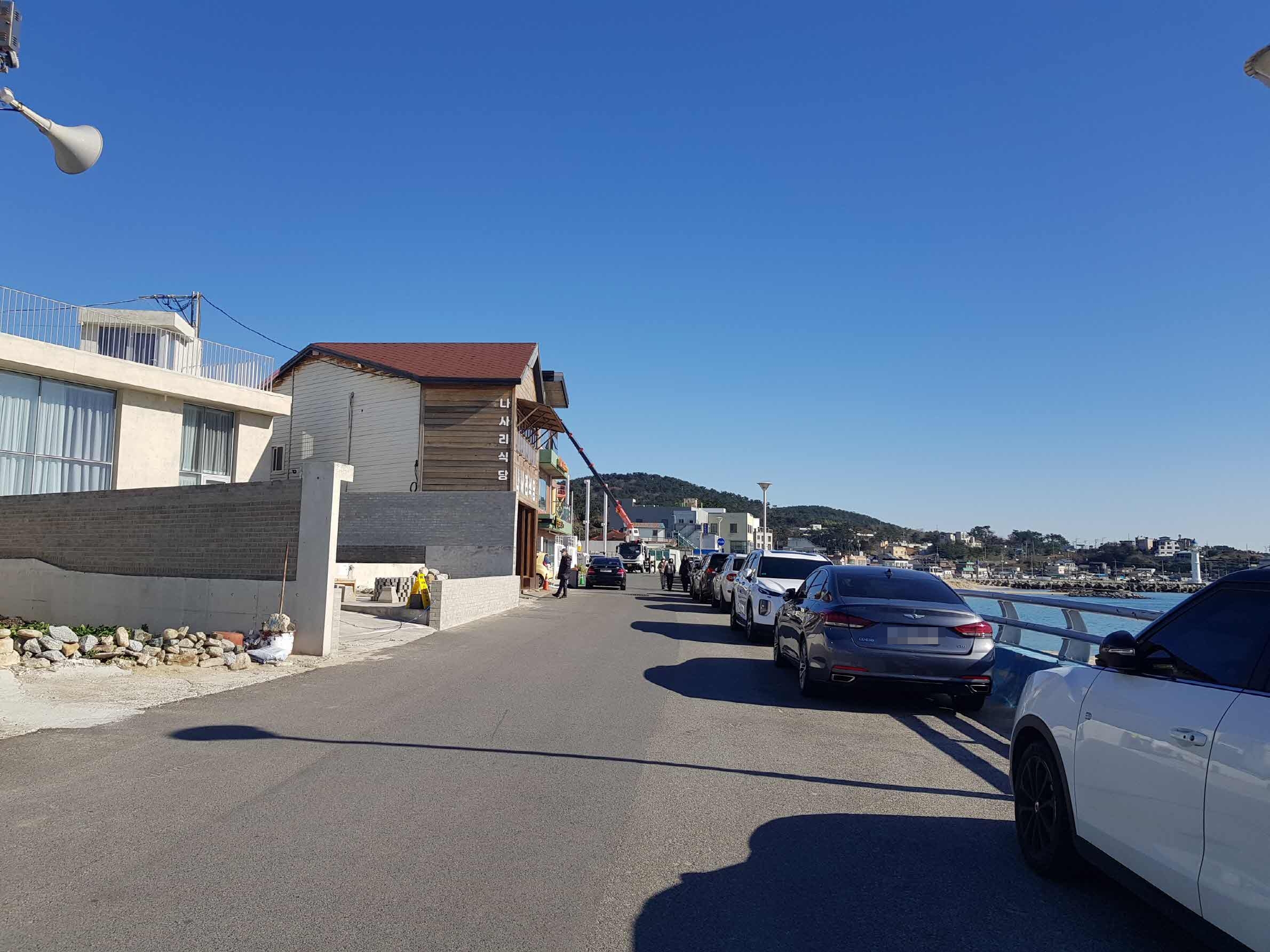 평일, 그리고 이른 점심시간이라 주차장은 비어있었지만 식당 앞에 있는 해안도로에는 차들이 가득 주차되어 있었다.