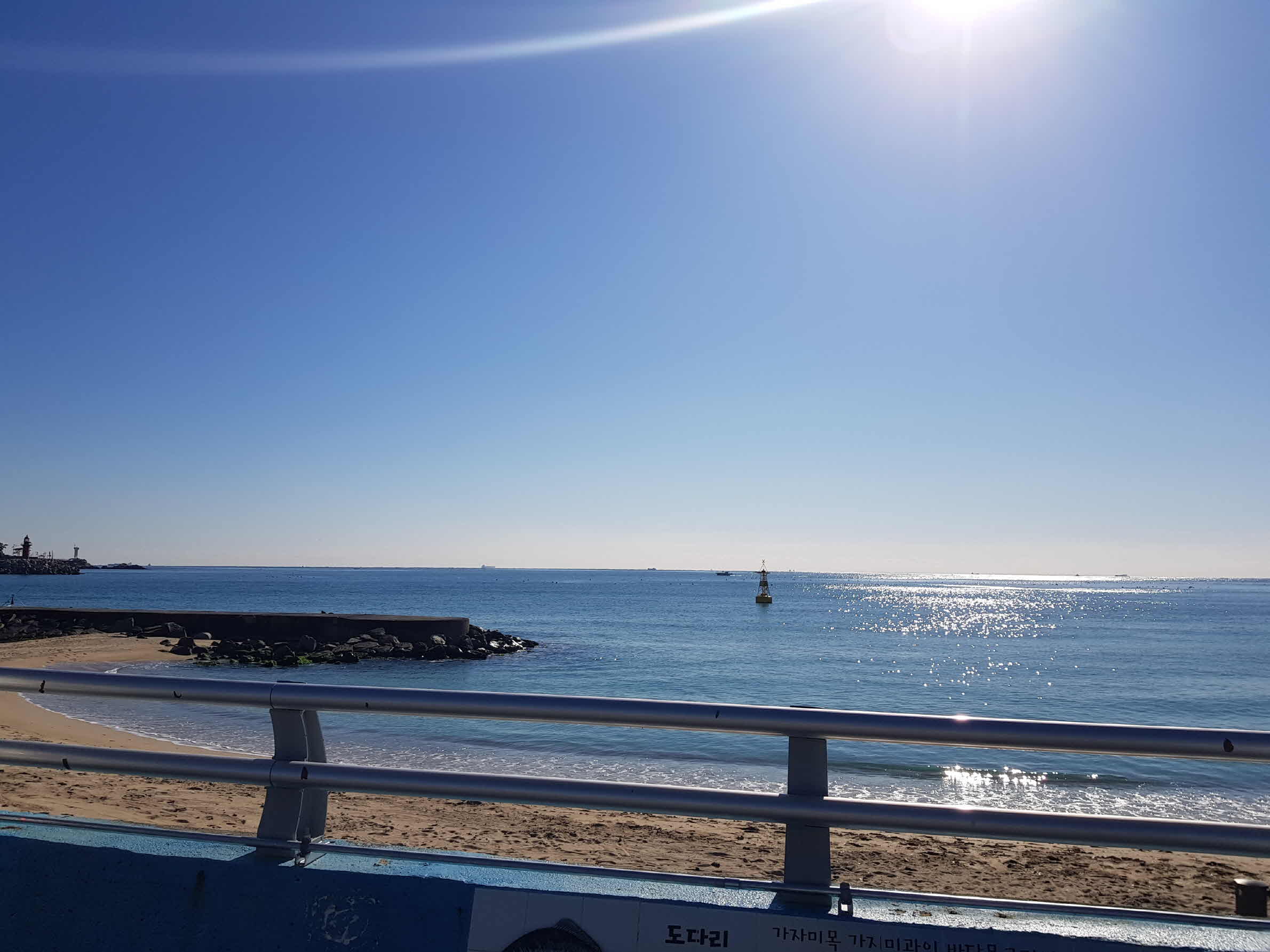주차를 하고 식당으로 가는 길에 보이는 해변이 겨울이지만 따뜻해 보인다.