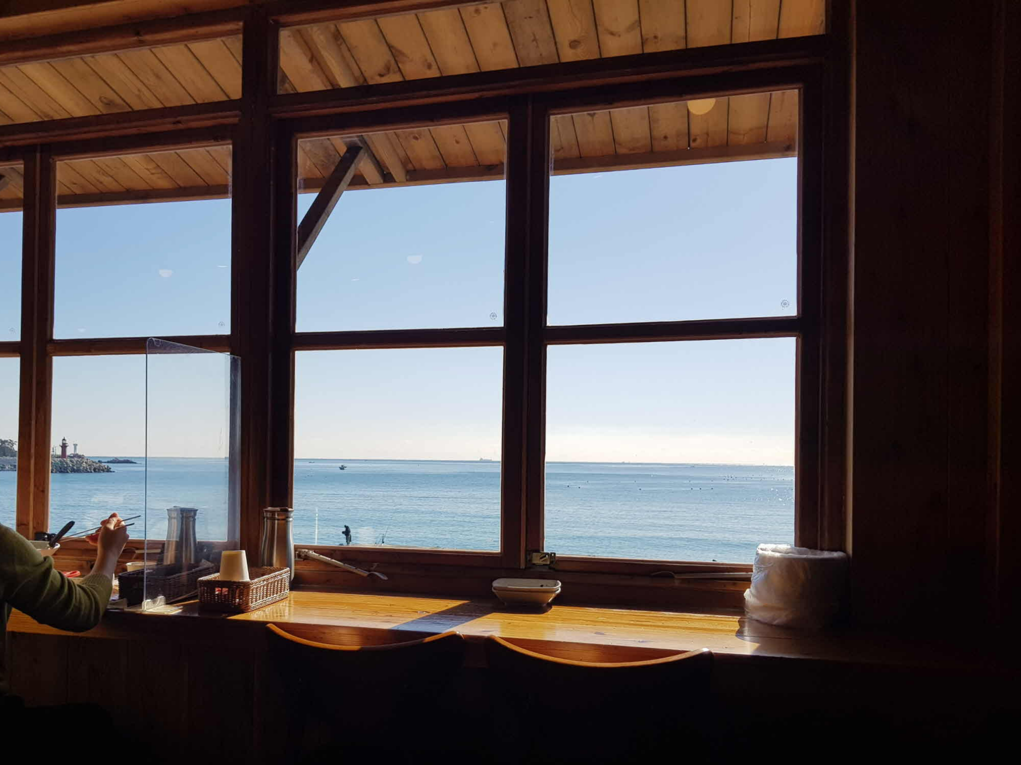 커플들에게 인기가 많은 좌석으로 필자가 방문했을때는 남남, 여여 커플들이 창가 쪽에 앉아 식사를 하고 있었다. 바로 옆 홀에 있는 테이블에 자리했었는데 앉아서도 바다가 시원하게 잘 보였다.