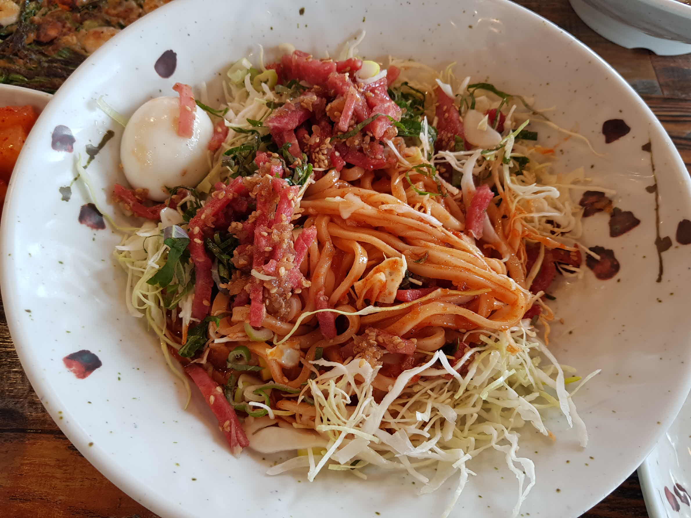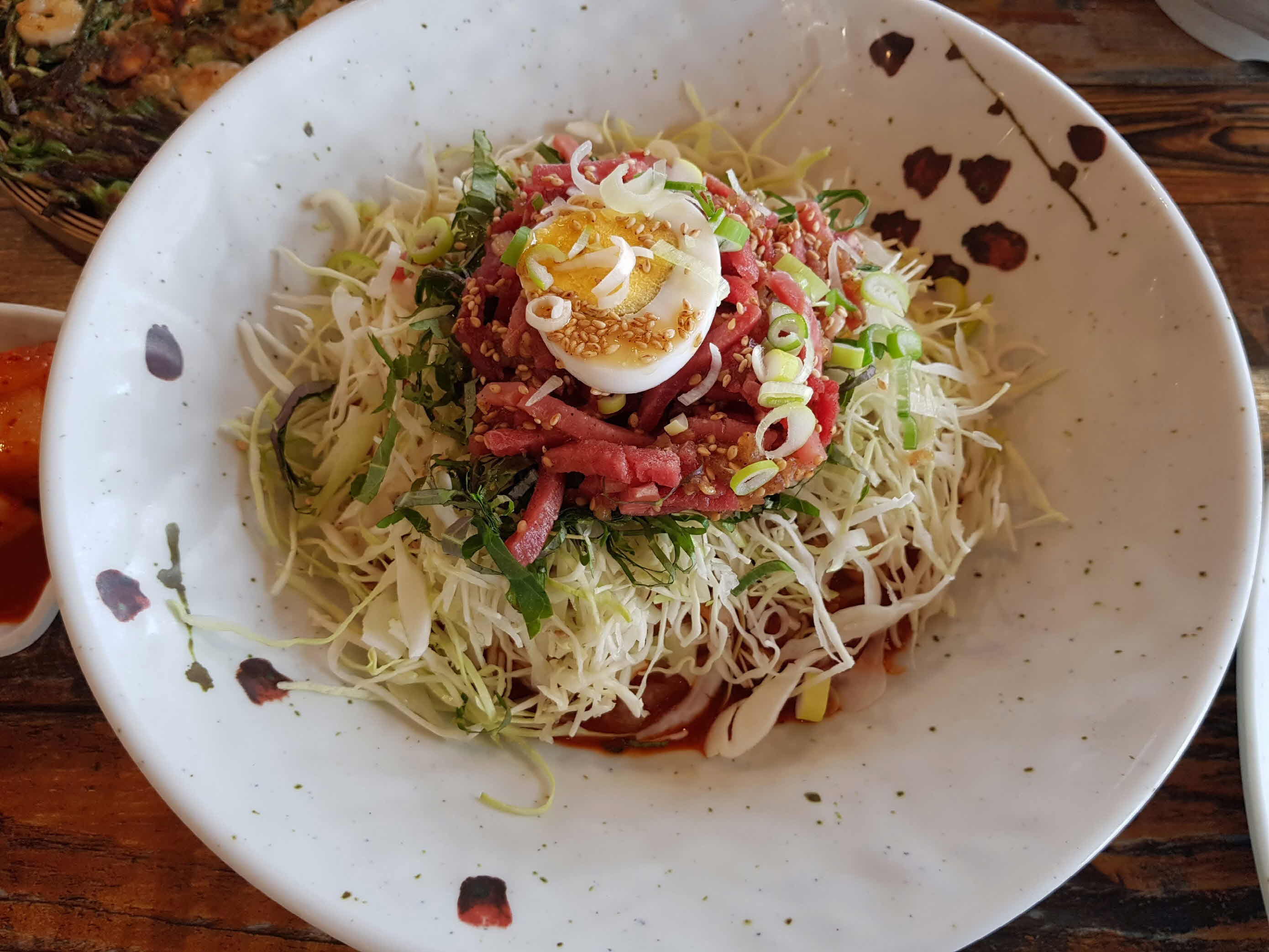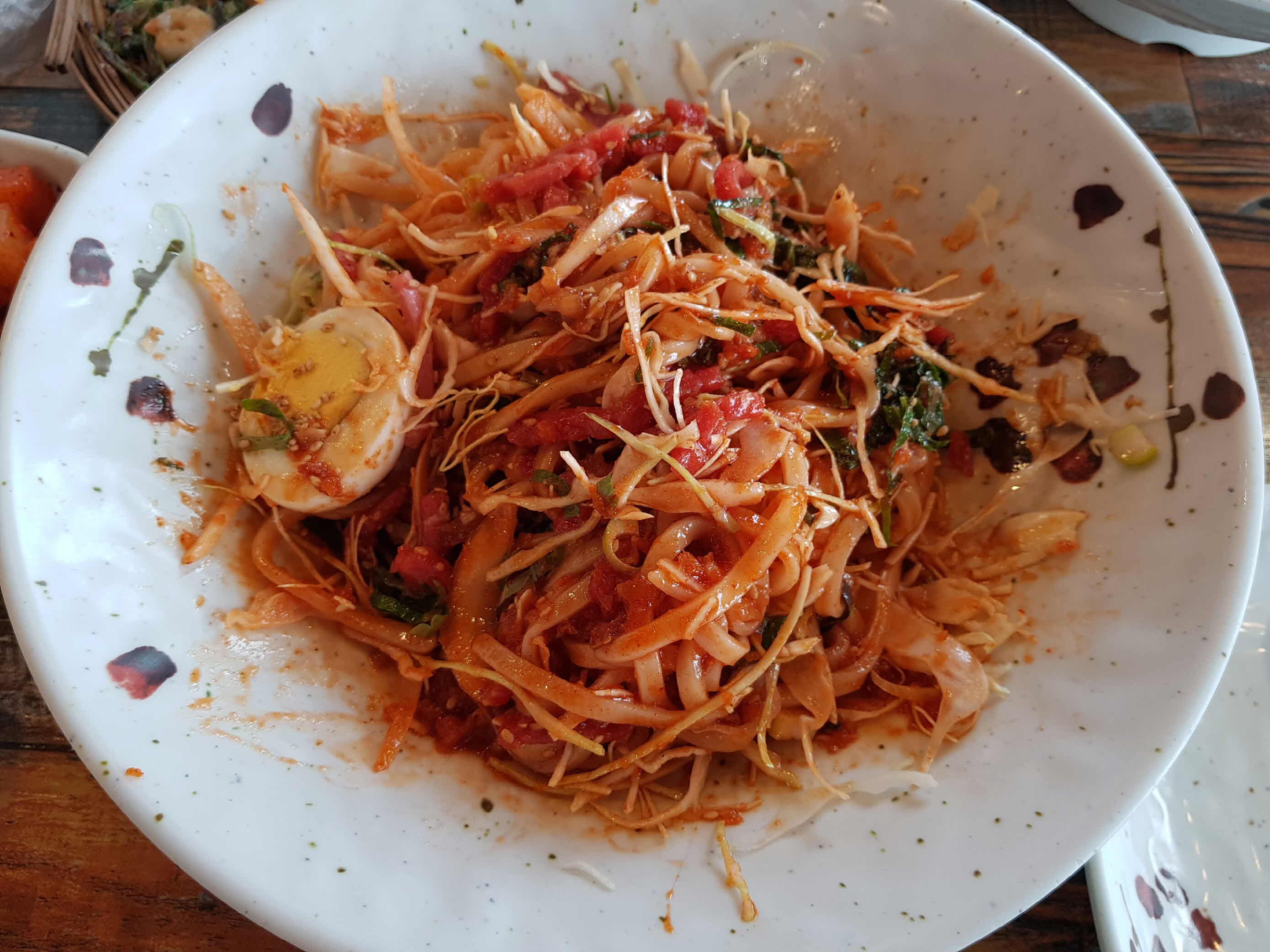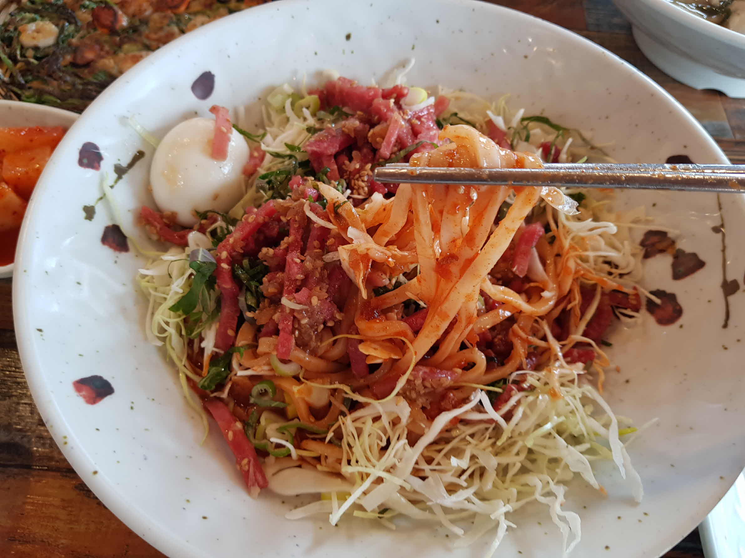시원하고 새콤하게 매콤한 육회비빔국수.