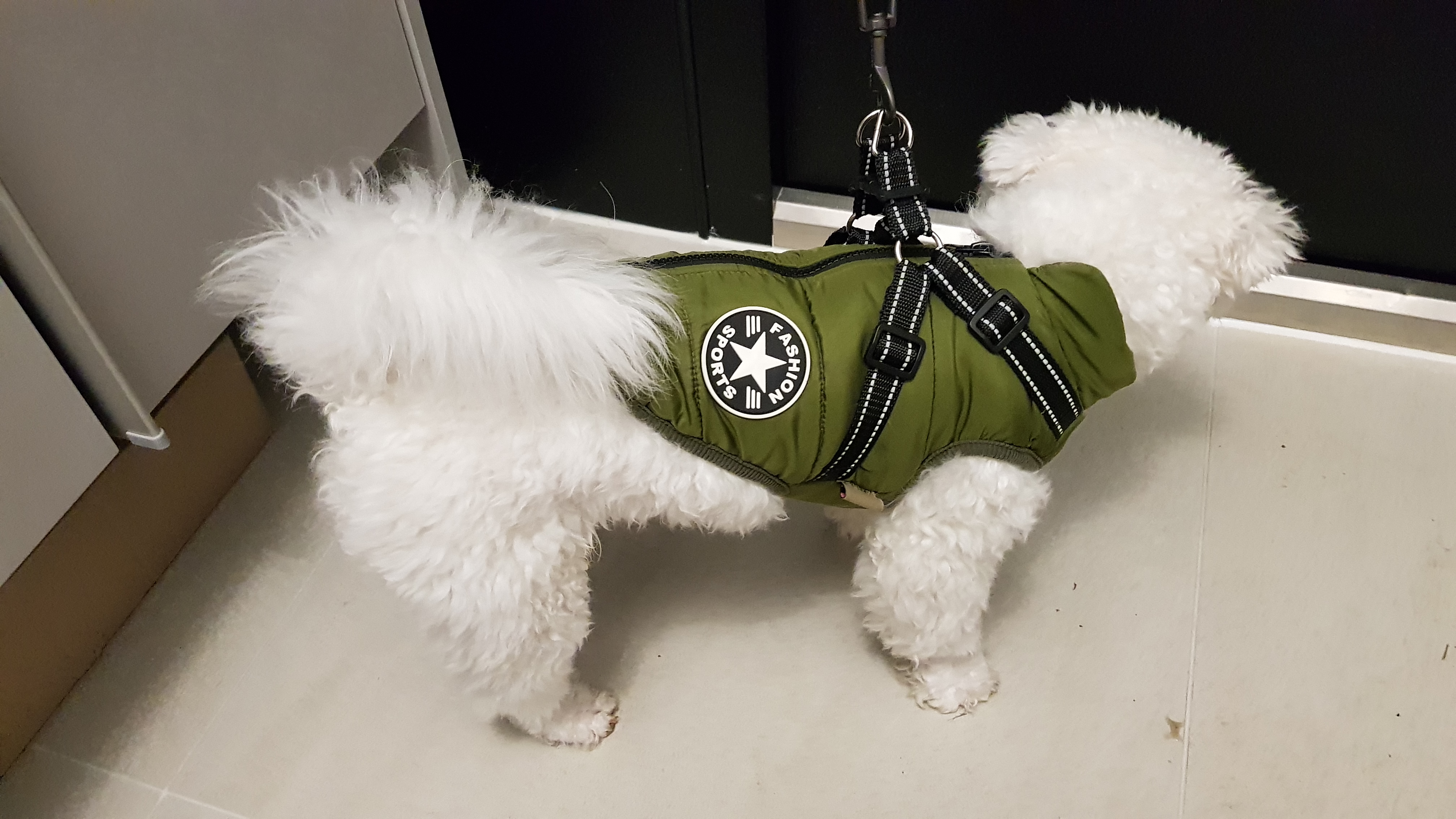 *날씨가 추워지면 강아지 산책때 옷(외출복)을 입혀야할지 말아야 할지 고민이 된다. 예전에 본 기억으로 소형견/1년이내/단모 기준으로 기온이 영상 15도 이하면 가벼운 옷을 입히도록 되어 있었다. 이걸 기준으로 삼고 1년이 지났거나 털이 길거나 바람이 많이 부는지 여부에 따라서 강아지 산책시 외출복을 입힐지 판단하면 되겠다. 비숑프리제는 털이 긴 장모라서 영상 10도 이하면 옷을 입혀 나간다. 더우면 입으로 헥헥 거리면 되지만 추웠다가 감기 걸리면 병원 행이니 말이다.