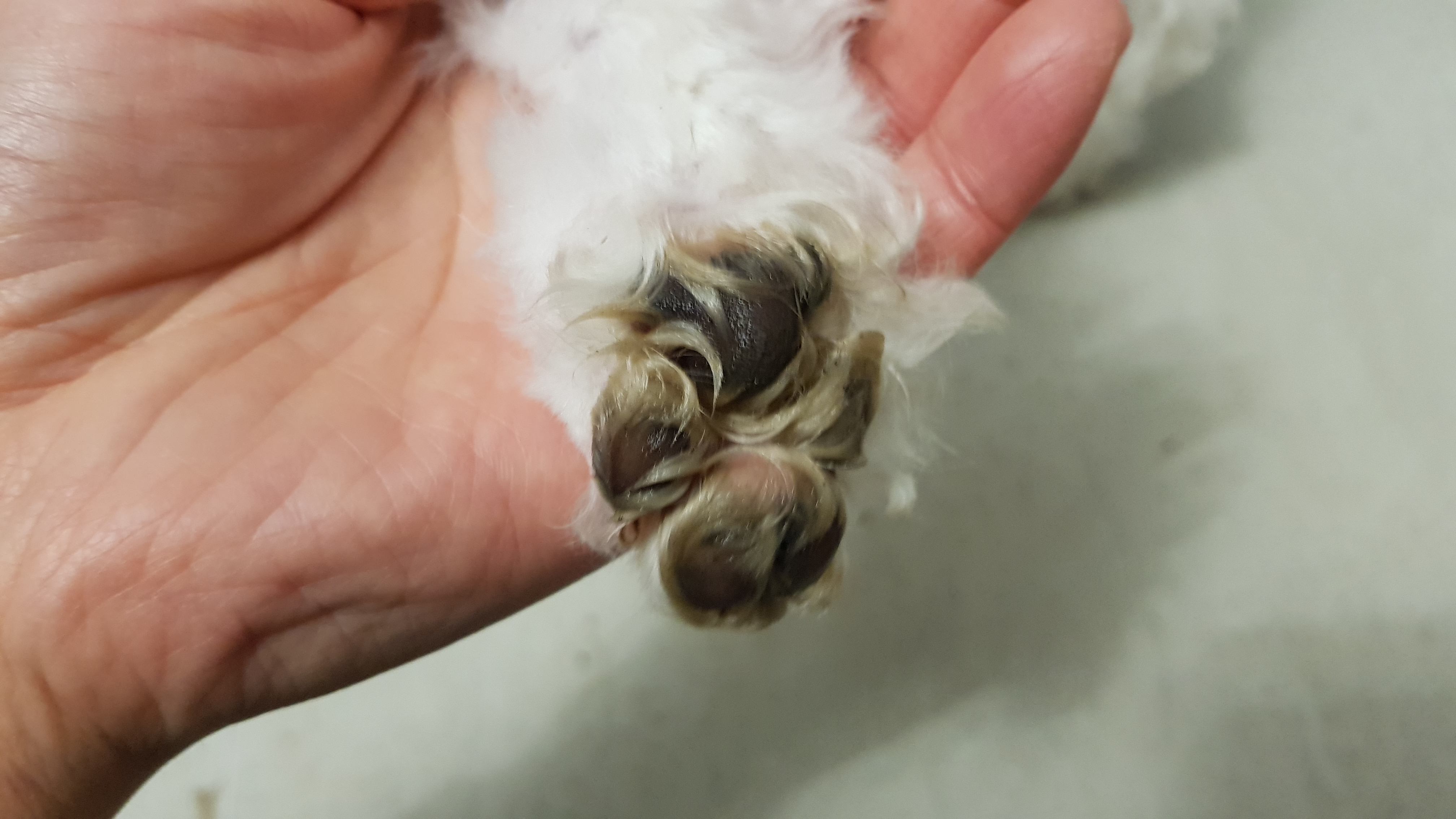 *발가락 사이 말리는 팁: 겉에 노출된 털이 어느정도 말랐을때 발가락 사이를 한번 더 말려준다. 발 가운데에 손가락을 넣어서 발가락 사이를 벌려주어 바람이 들어 갈 수 있게 공간을 만들어준다. 그리고 드라이기로 바람을 불어 넣어주면 사이사이 바짝 말릴 수 있다.
