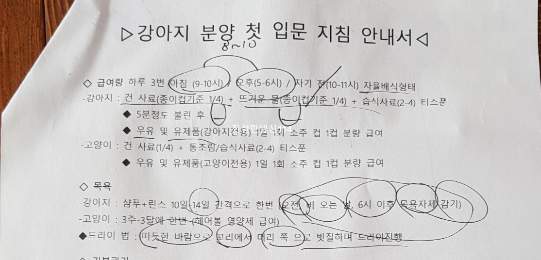 강아지를 분양 받았을 때 목욕시간은 오전이나 비오는 날, 오후 6시 이후에는 가급적 피하라고 안내를 받았었다.
