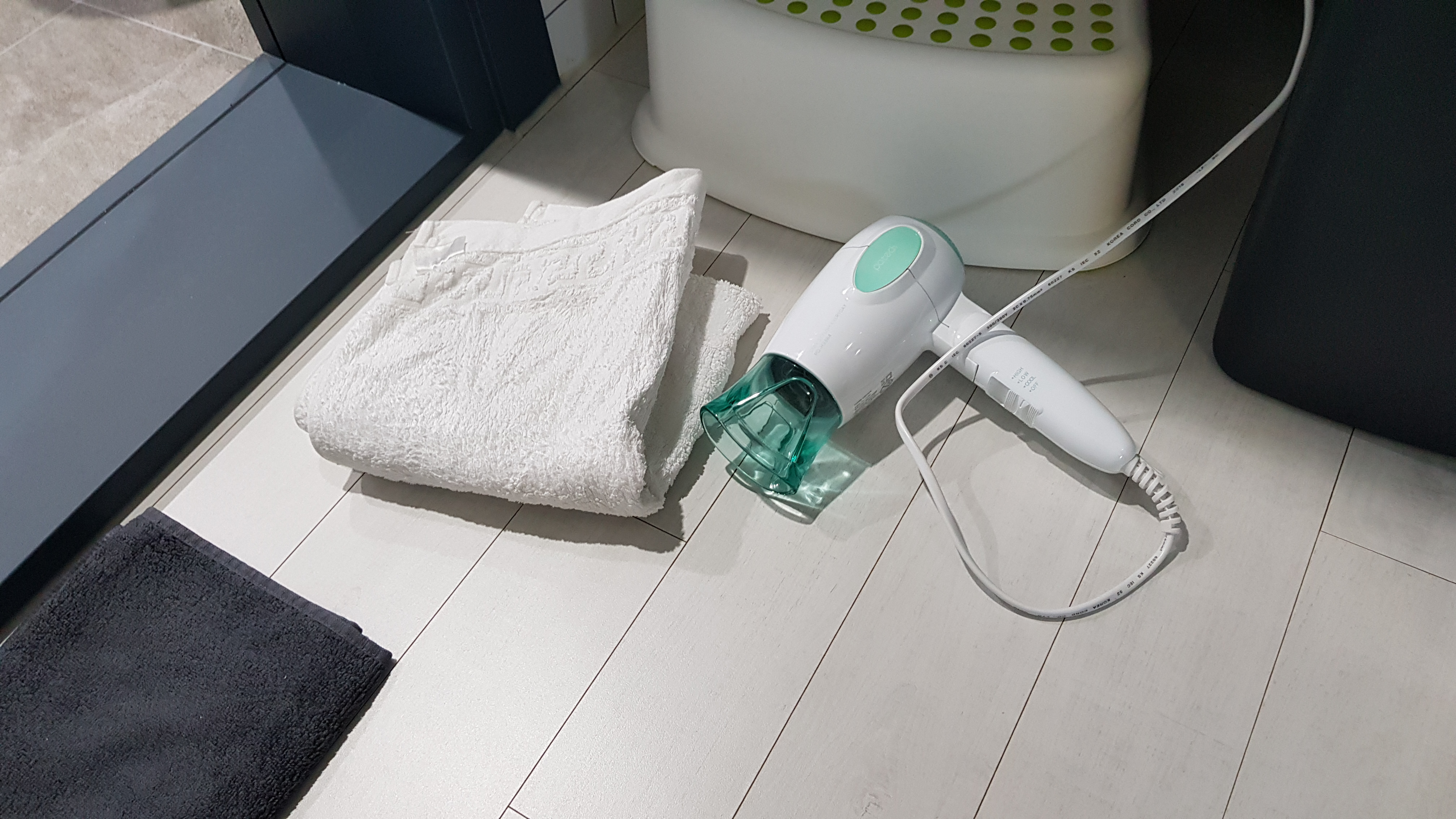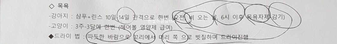 1. 목욕 전 필요한 용품과 털 말리는 수건, 드라이기까지 미리 꺼내어 놓기