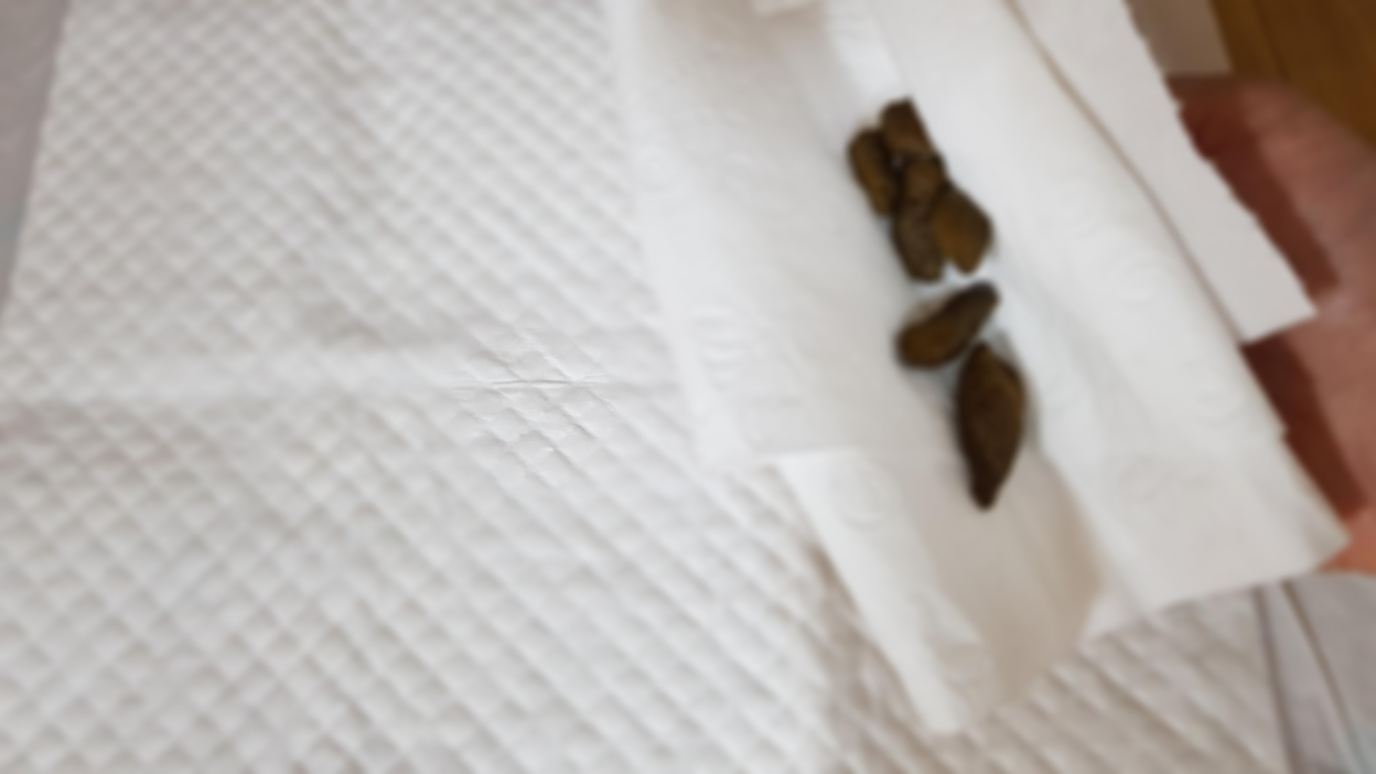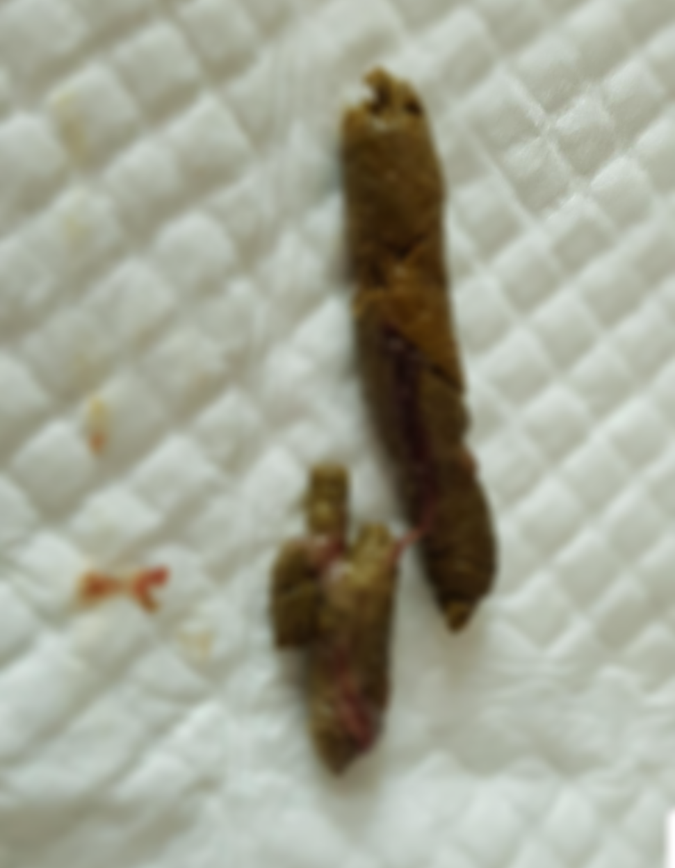 이날 저녁 구충제와 약을 먹이고나서 바로 다음날 아침부터 변이 눈에 띄게 좋아졌다. 변에서 피는 더이상 나오지 않았지만 점액은 계속해서 나왔다. 약을 먹이고 삼일뒤 변은 이전처럼 정상으로 돌아왔다. 그래도 약은 중단하지 않고 마지막까지 먹였다.