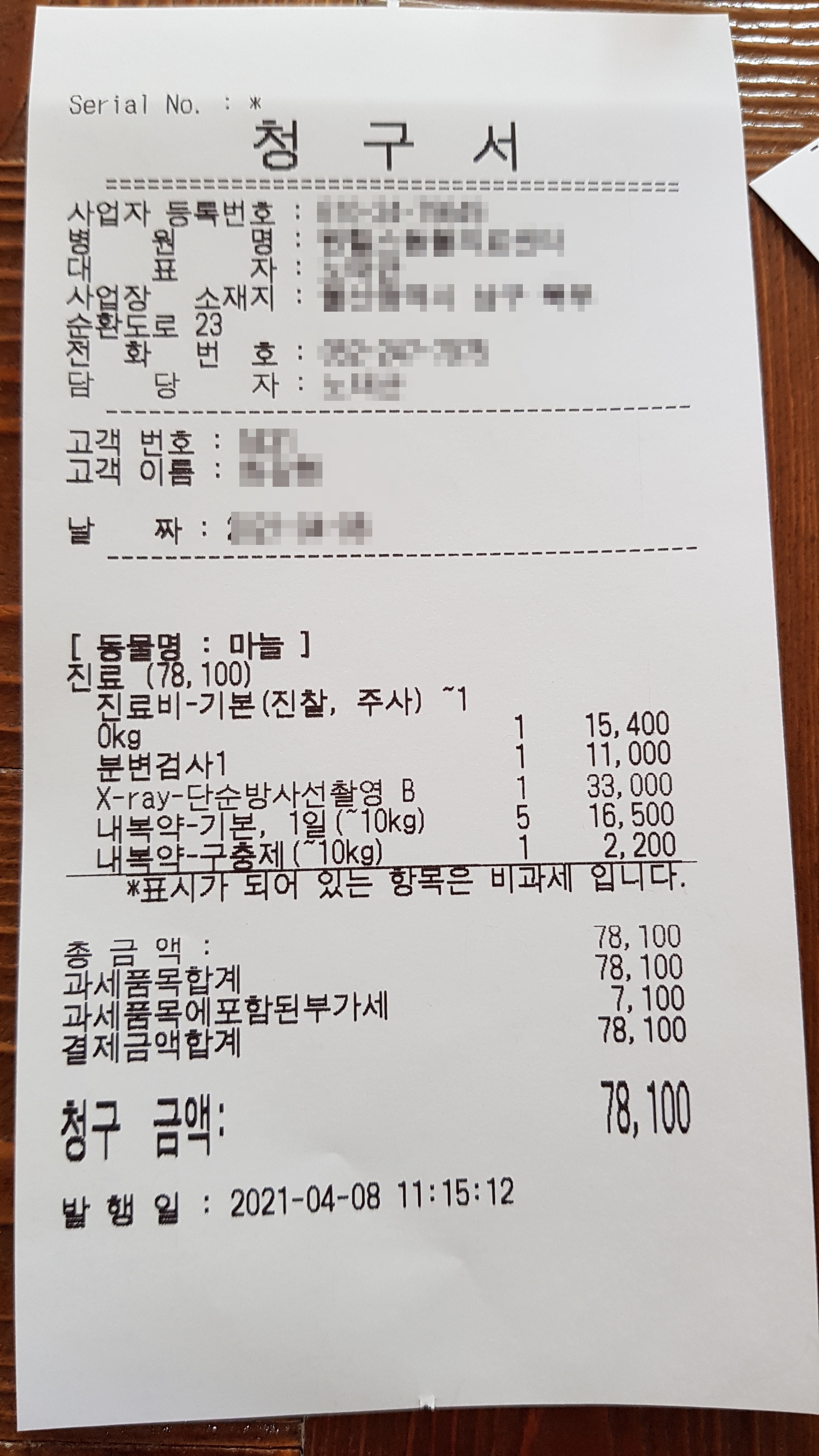 강아지 보험도 있다고 하는데 마늘이는 보험을 들어놓지 않아 병원비가 사람이 진료 받을때보다 많이 나온다. 돈은 둘째치고 이번에 처방받은 약먹고 싹 나았으면 싶다.