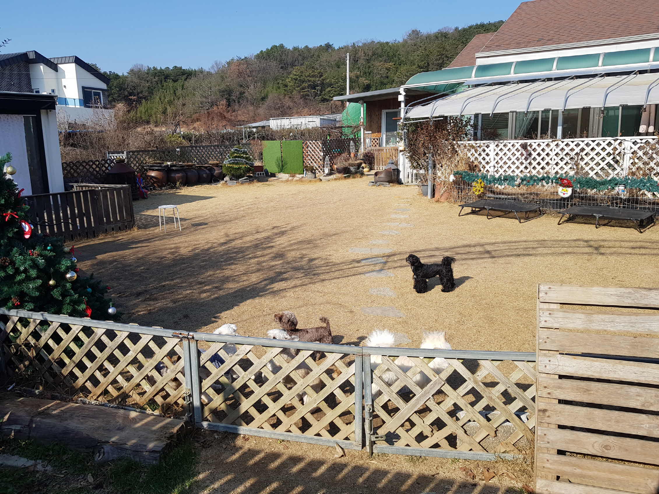 찾아보니 강아지가 뛰어놀 수 있는 공간이 있는 애견 호텔이 그리 많지 않다. 그러다 발견한 한 애견유치원에 천연 잔디마당이 있었고 이곳에서는 강아지 호텔링도 함께 운영되고 있었다.