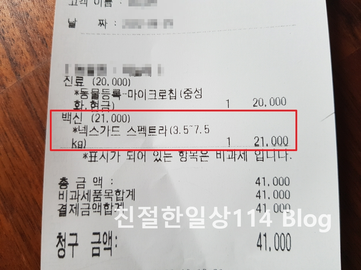 심장사상충 약값이 예상보다 비싸 처음 구매했을 때 놀랬다. 다른 제품도 있는 것 같지만 지금 먹이고 있는 넥스가드 스펙트라 제품 몸무게 3.5~7.5kg 기준 1개당 21,000원이다.(강아지 몸무게 따라 약 값이 달라지며 몸무게가 많이 나갈 수록 약값이 비싸다) 1달에 1번씩 먹이므로 매달 21,000원 지출이니 부담스러운 가격이다.