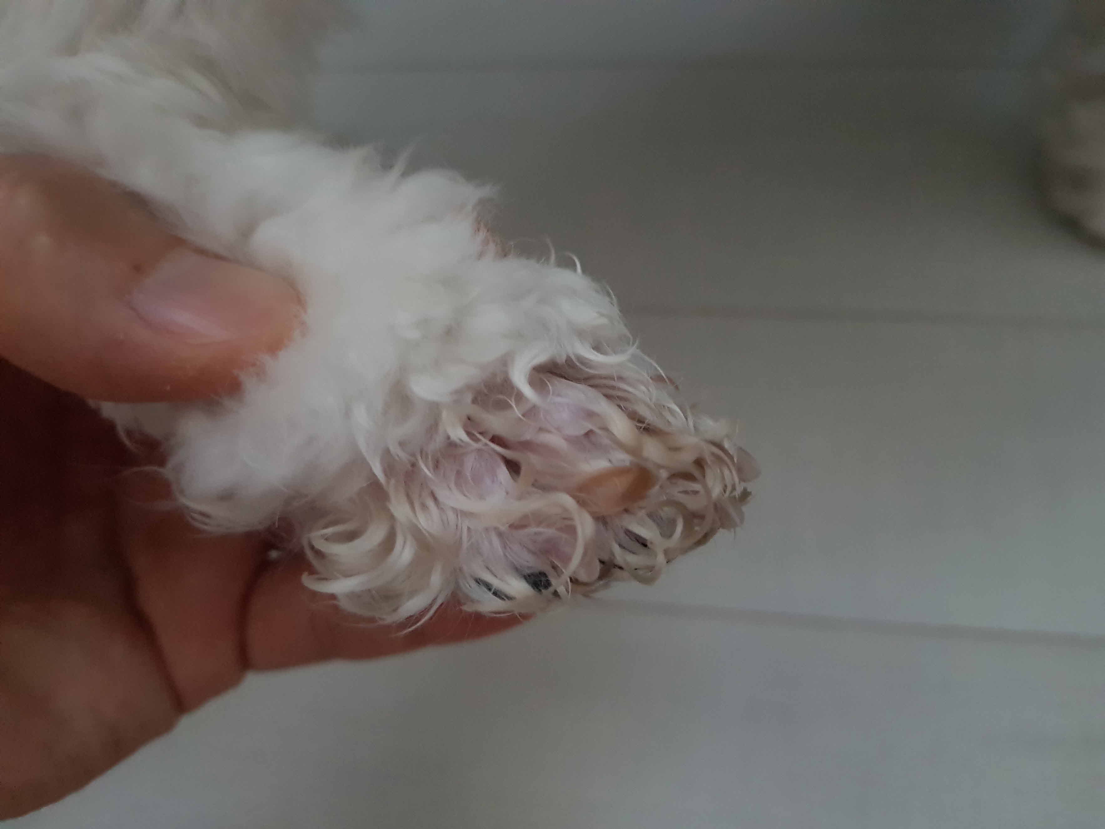 강아지의 발바닥 피부는 딱딱해서 맨발로 지면을 디디고 다닌다. 집안에서는 뽀족하고 날카로운 것으로 발바닥에 상처가 생길일이 거의 없지만 집밖으로 산책을 나갔을 때 크고 작은 상처가 생길 수 있다. 이렇게 발에 상처가 났을 경우 강아지가 발을 계속해서 핥을 수 있다.
