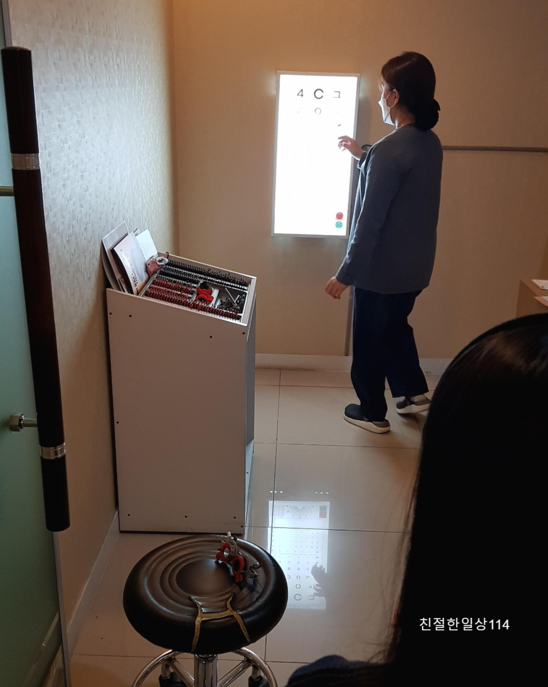 두가지 검사가 끝나면 잠시 기다렸다가 작은 검사실에 들어가 시력검사를 한다.