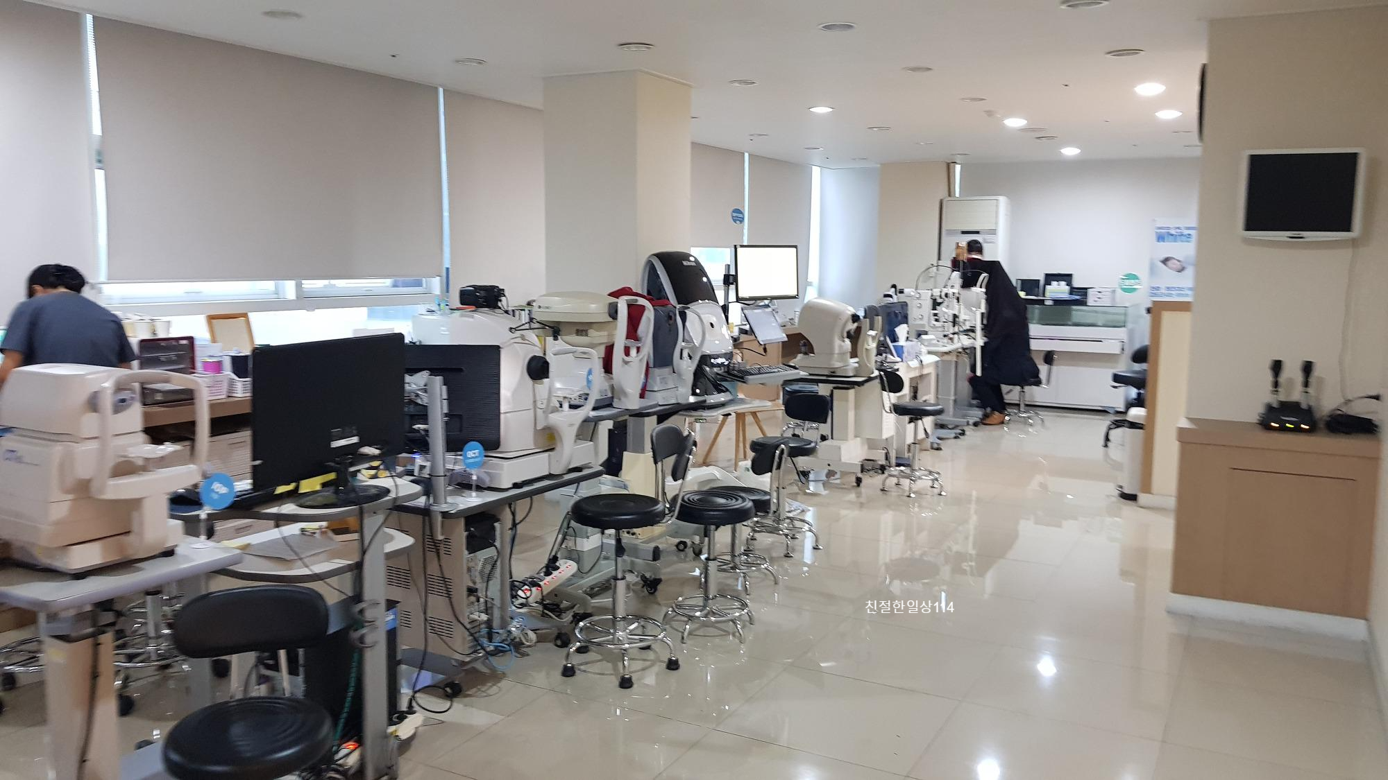 접수 후 5분정도 기다리니 이름을 부른다. 안과 가장 안쪽으로 가니 길다랗고 넓은 공간이 나오는데 의자가 길게 놓여져 있다. 이곳에서 안압검사와 시신경검사를 한다.