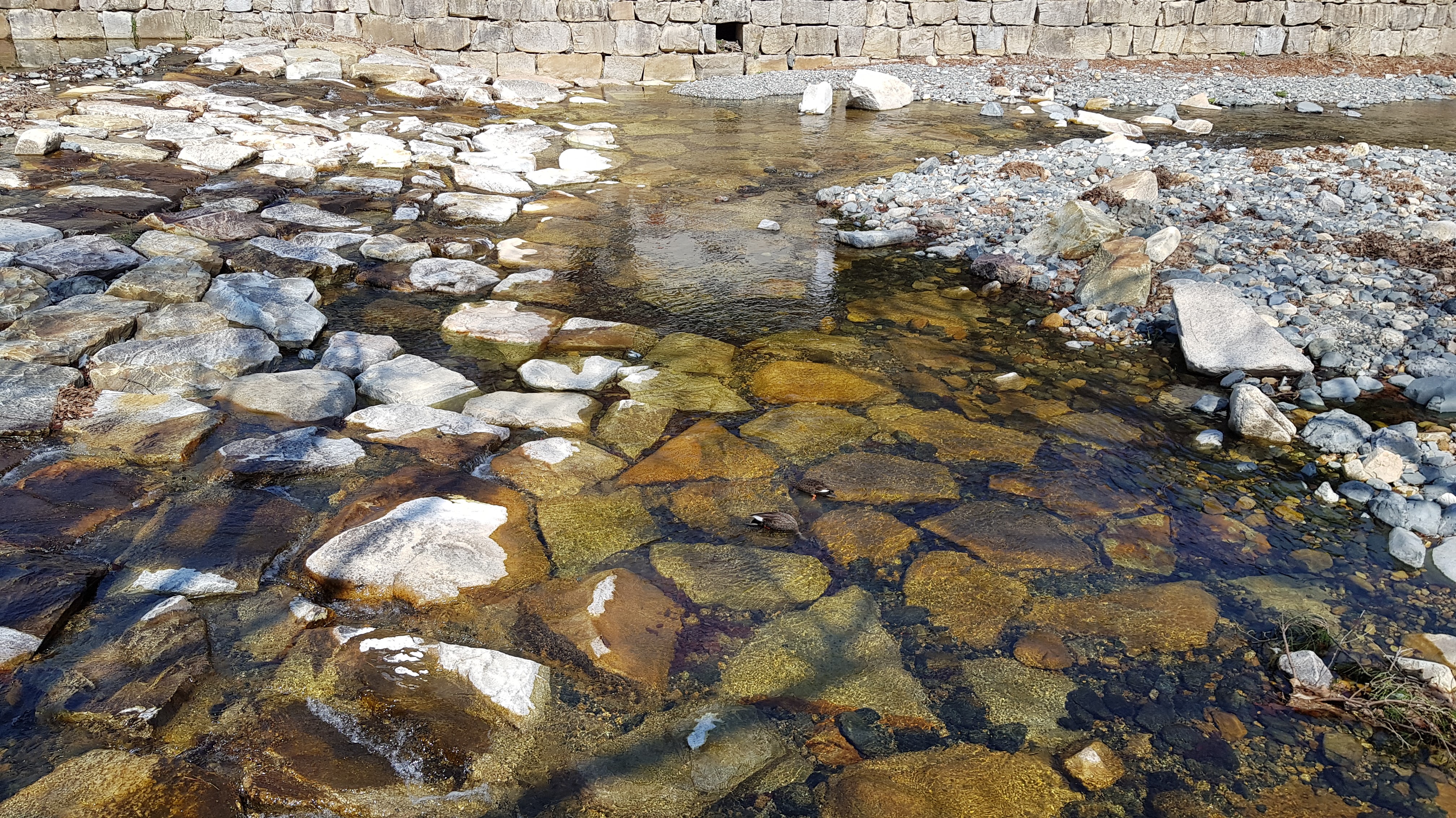 통도사를 가로지르는 맑은 냇물에 오리 두마리가 놀고 있는게 신기해 사진에 담아 보았다.