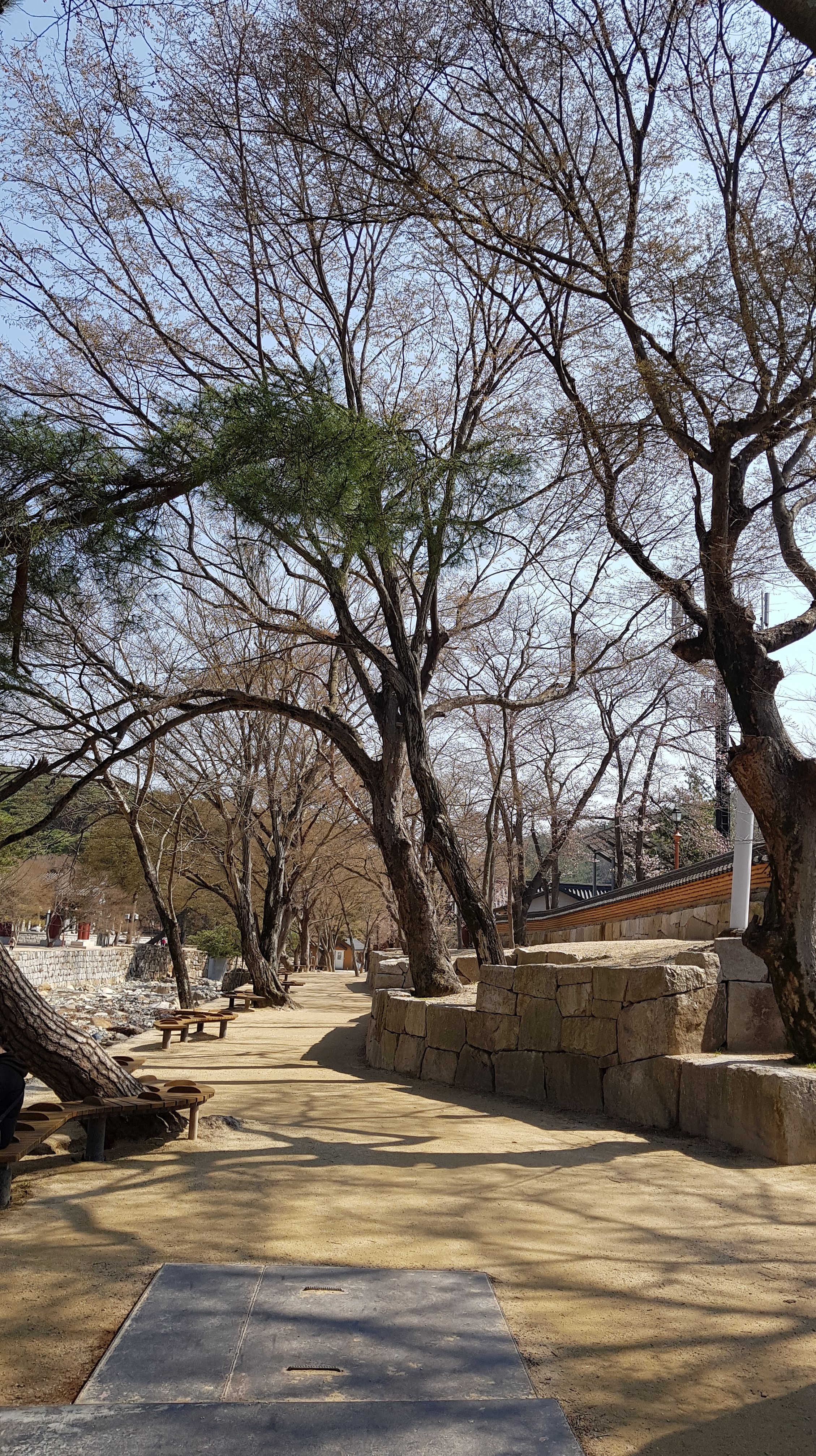 집에 들어오는 길에 심어져 있는 벚나무가 꽃을 피우기 시작했다. 성격이 급한 벚나무는 벌써 꽃잎을 떨어뜨리고 초록빛깔 잎을 내민다. 집 주변에서부터 벌써 봄이 성큼 다가옴을 느낀 3월의 한날, 숲길을 걸닐며 한적함을 느끼고 싶었다. 아내와 함께 시간이 허락한 장모님을 모시고 양산 통도사로 향한다. 얼마전 경주에 갔을 때 불국사를 들렸었는데 불국사는 유명세? 때문인지 방문객이 많았으며 경내가 통도사보다 넓지 않아 한적함을 느끼기에는 다소 부족했다. 그래서 지금 이 시점, 이 느낌에서는 통도사가 당겼다. 필자는 기독교인이지만 기분전환하고 한적함을 느끼고, 즐기는데는 종교를 초월하는 주의라서 절과 사찰가는걸 개의치 않아 한다. ‘통도’라는 명칭은 어릴적에 통도환타지아라는 놀이동산 TV 광고를 통해서 먼저 알게 되었는데 이 놀이동산도 통도사 이름에서 따와서 지은 것이고 통도사 부근에 위치하고 있다. 자 그럼 이제부터 통도사 경내를 함께 돌아보며 봄날의 한적함을 느껴보자.