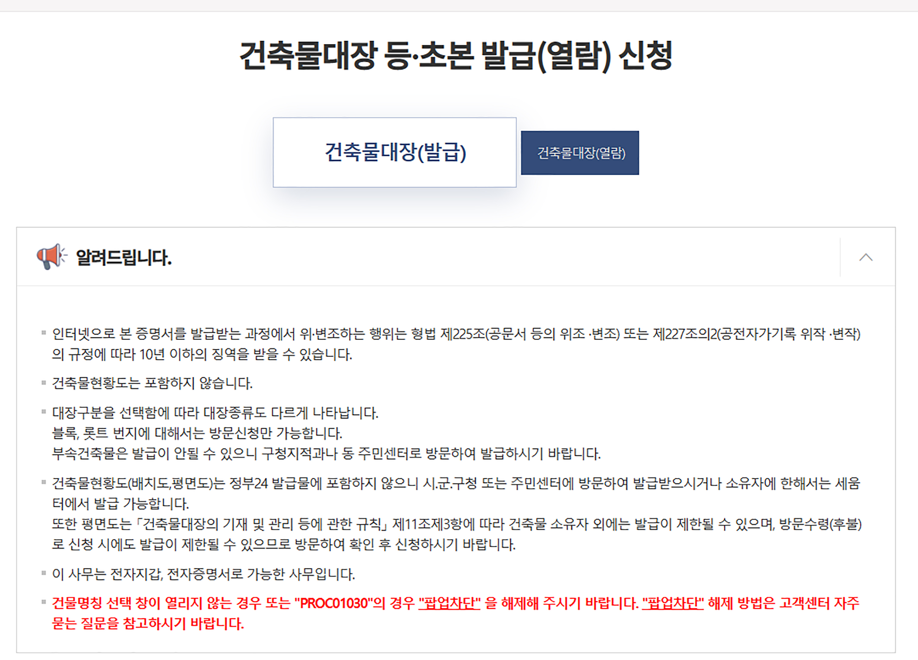 건축물대장 인터넷 발급시 포함되지 않는 내용 & 구군청 방문 신청해야하는 경우