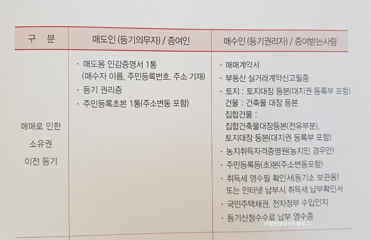 1. 매매로 인한 소유권 이전등기 필요서류