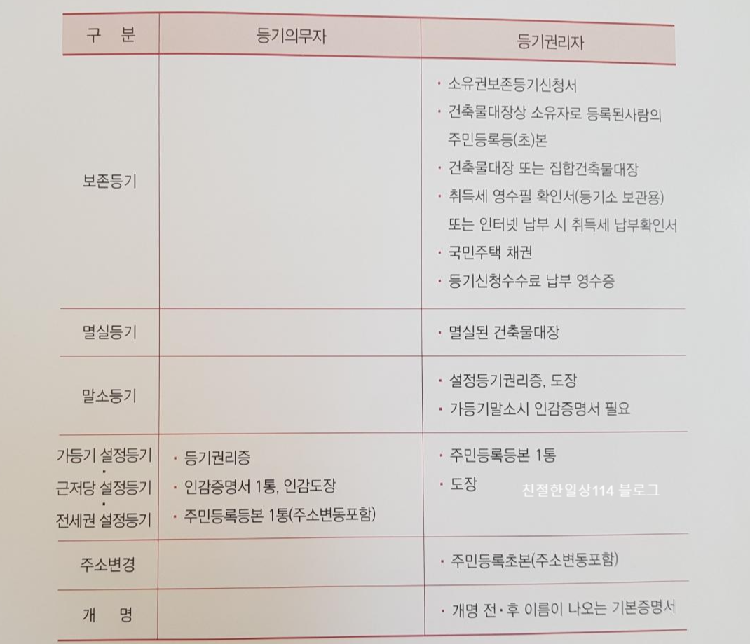 ㅣ등기종류별 등기신청시 구비서류(필요서류) / 서류 발급시 주의사항, 확인할 내용