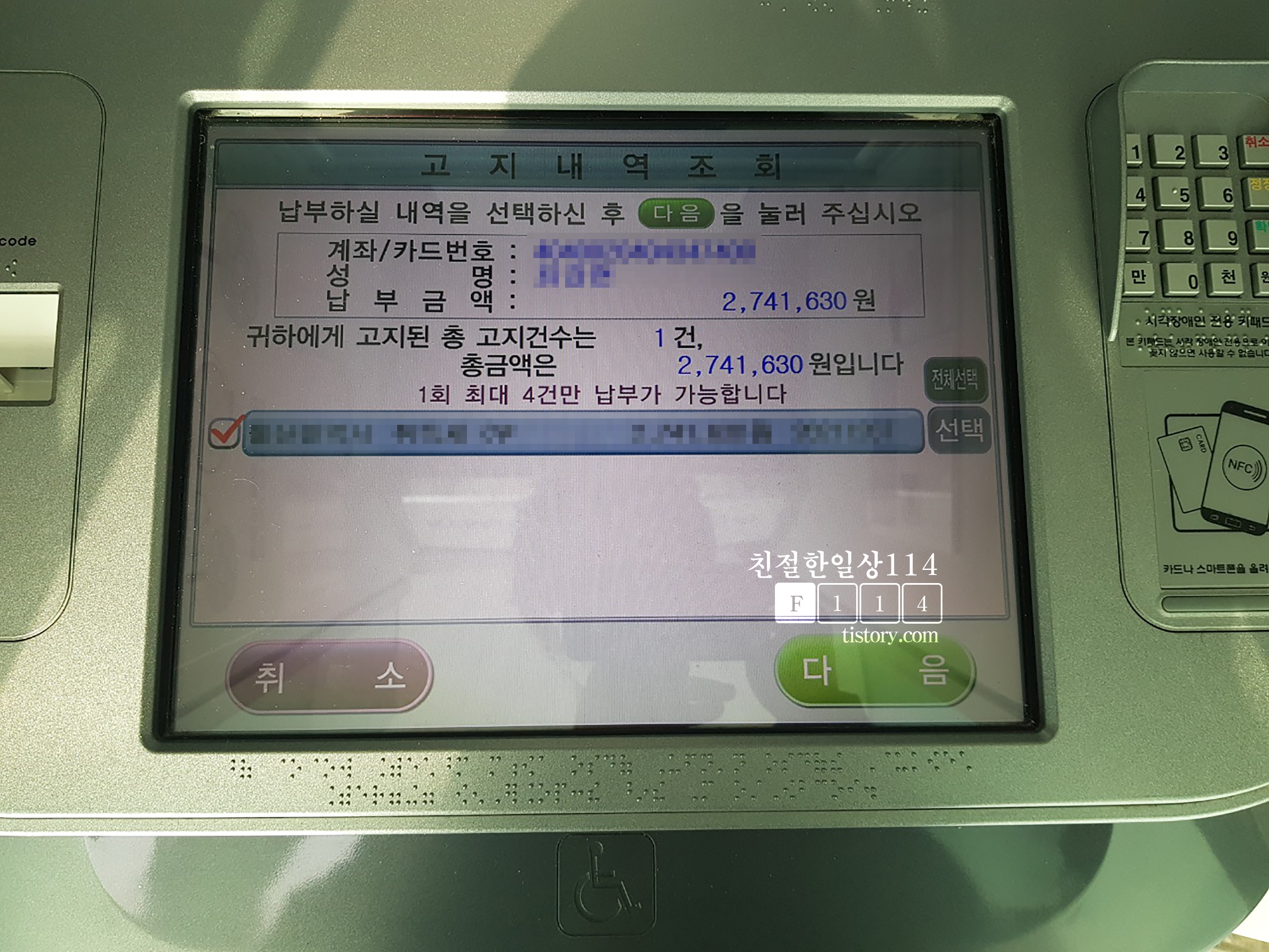 농협 ATM기기에서 취득세 납부하는 방법은 사진 순서대로 따라하면 되겠다.