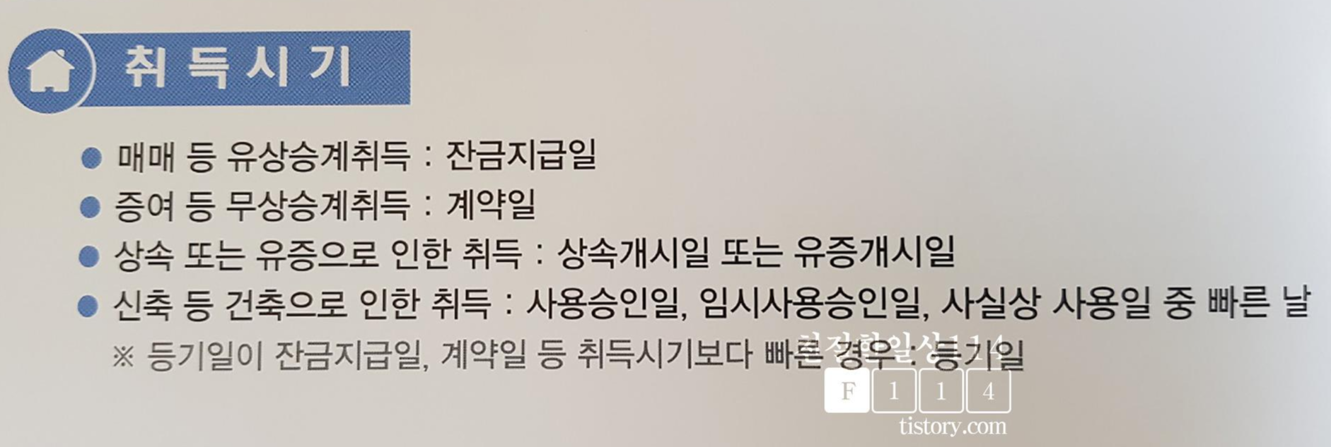 => 아파트, 주택 등의 주로 이루어지는 매매 방식으로 취득시기는 잔금지급일을 기준으로 삼으면 되겠다.