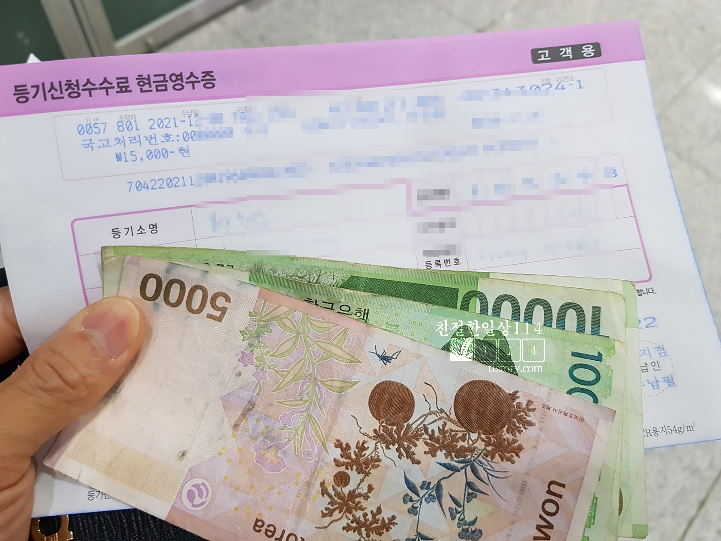 1층으로 내려가 신한은행에서 등기신청수수료를 15,000원 주고 납부하고 납부영수증을 받는다.