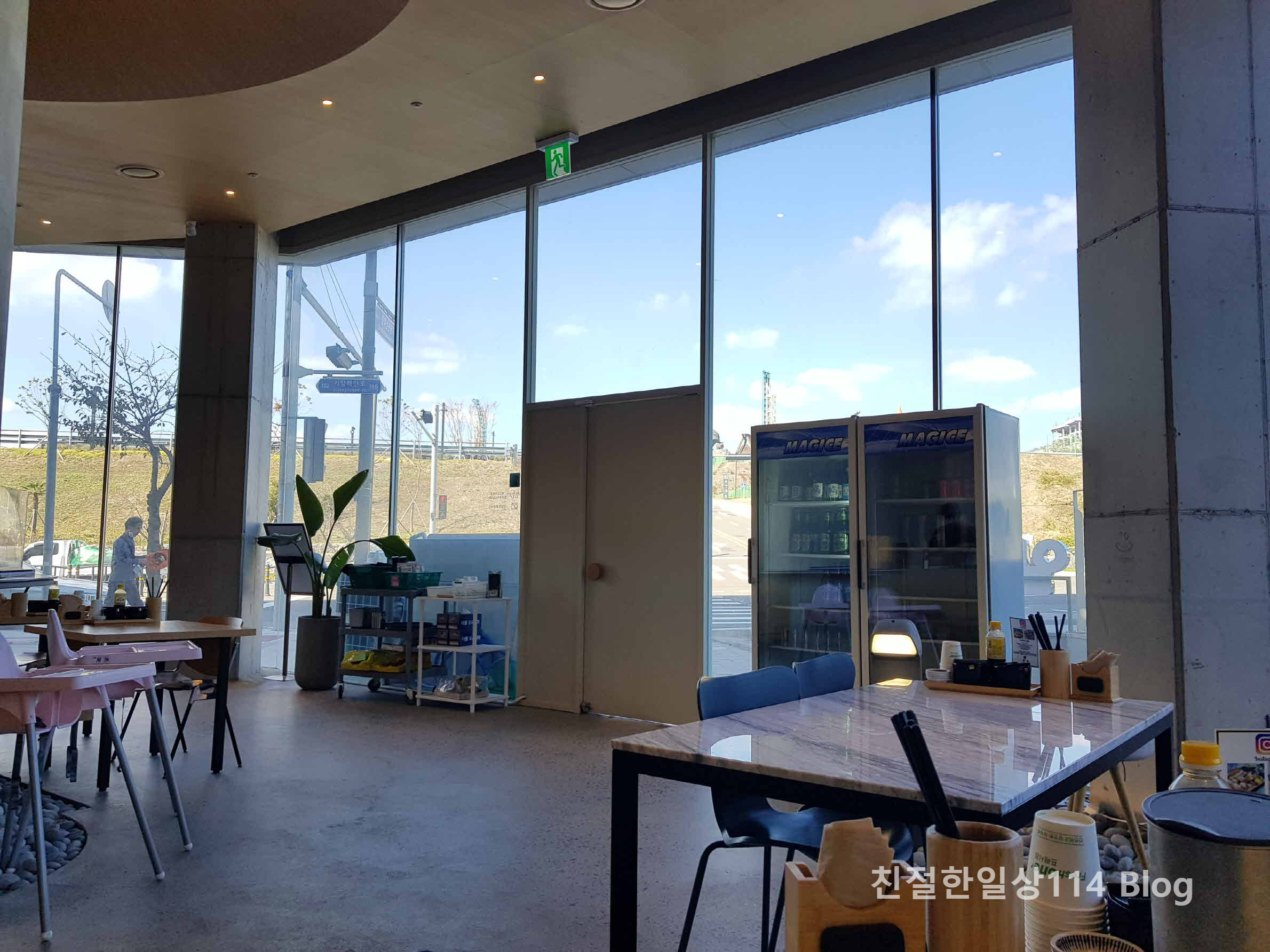 주방쪽을 제외하고 인도를 둘러싼 면이 통유리로 되어있어 시선의 가림없이 바깥을 내다 볼 수 있다.