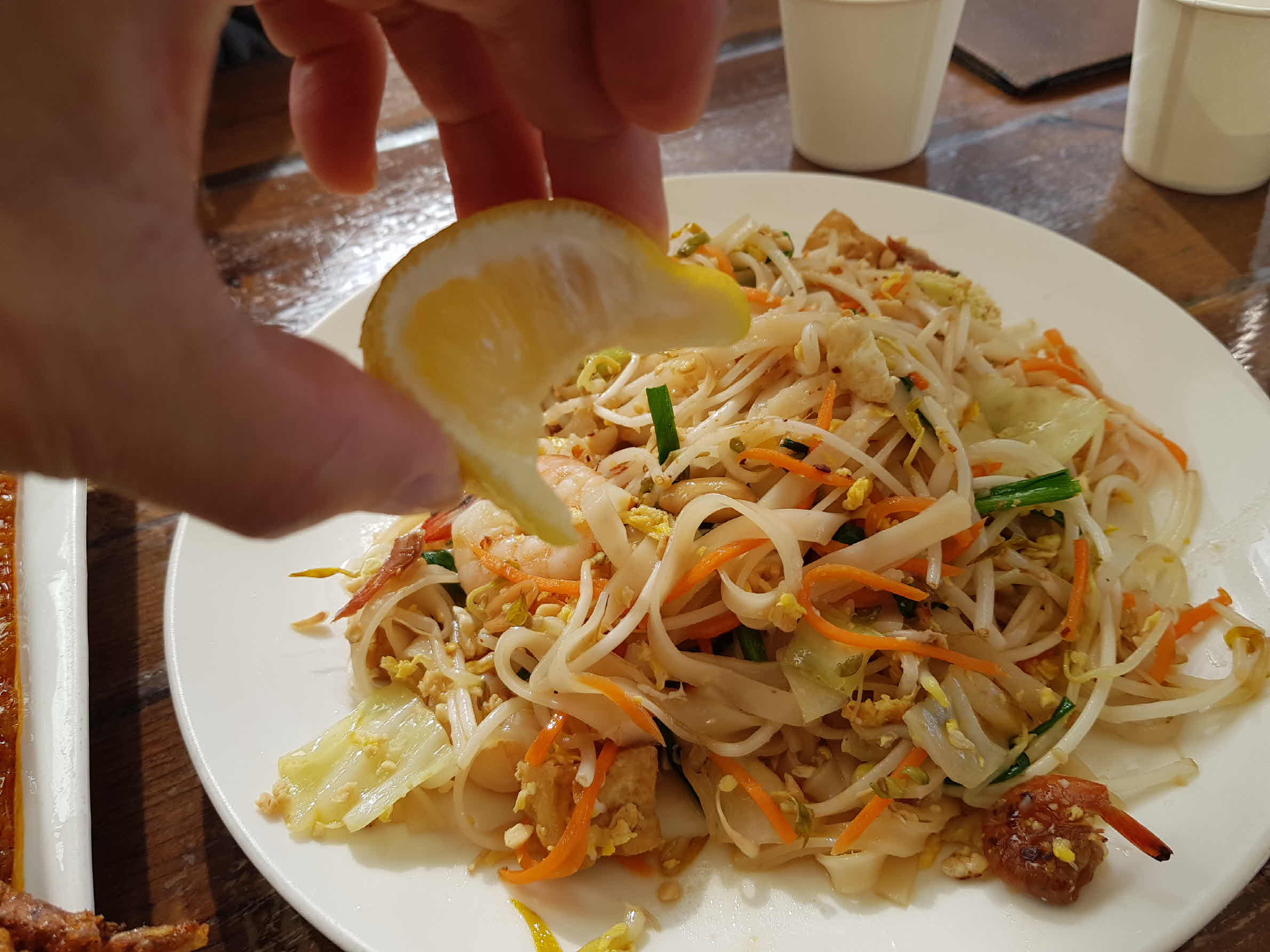 팟타이에는 레몬을 짜주고 섞은 뒤 본격적으로 식사를 시작한다.
