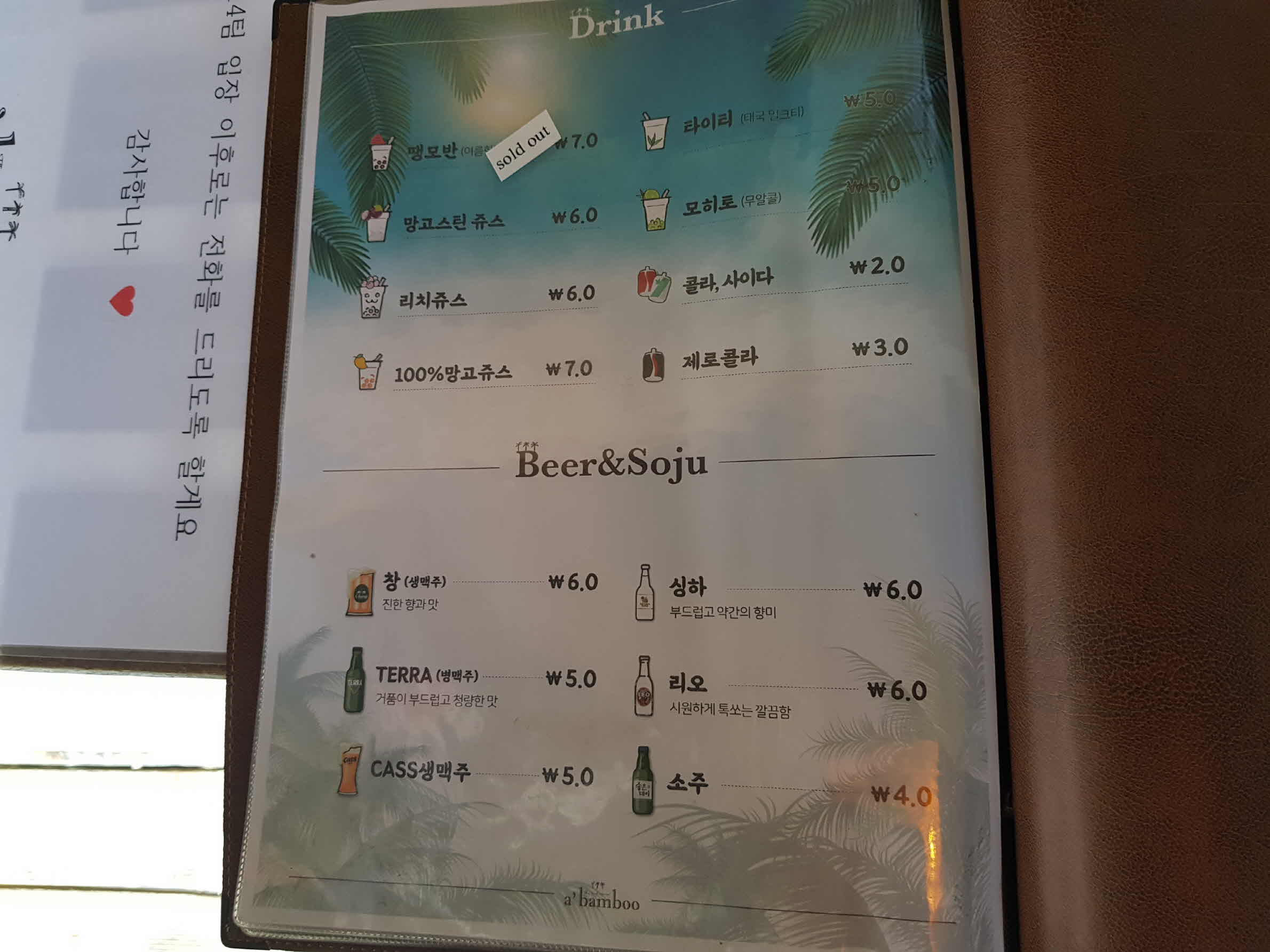 서빙을 하는 직원들은 한국인들이며 조리실에서 음식을 하는 직원중에는 태국인도 있다.