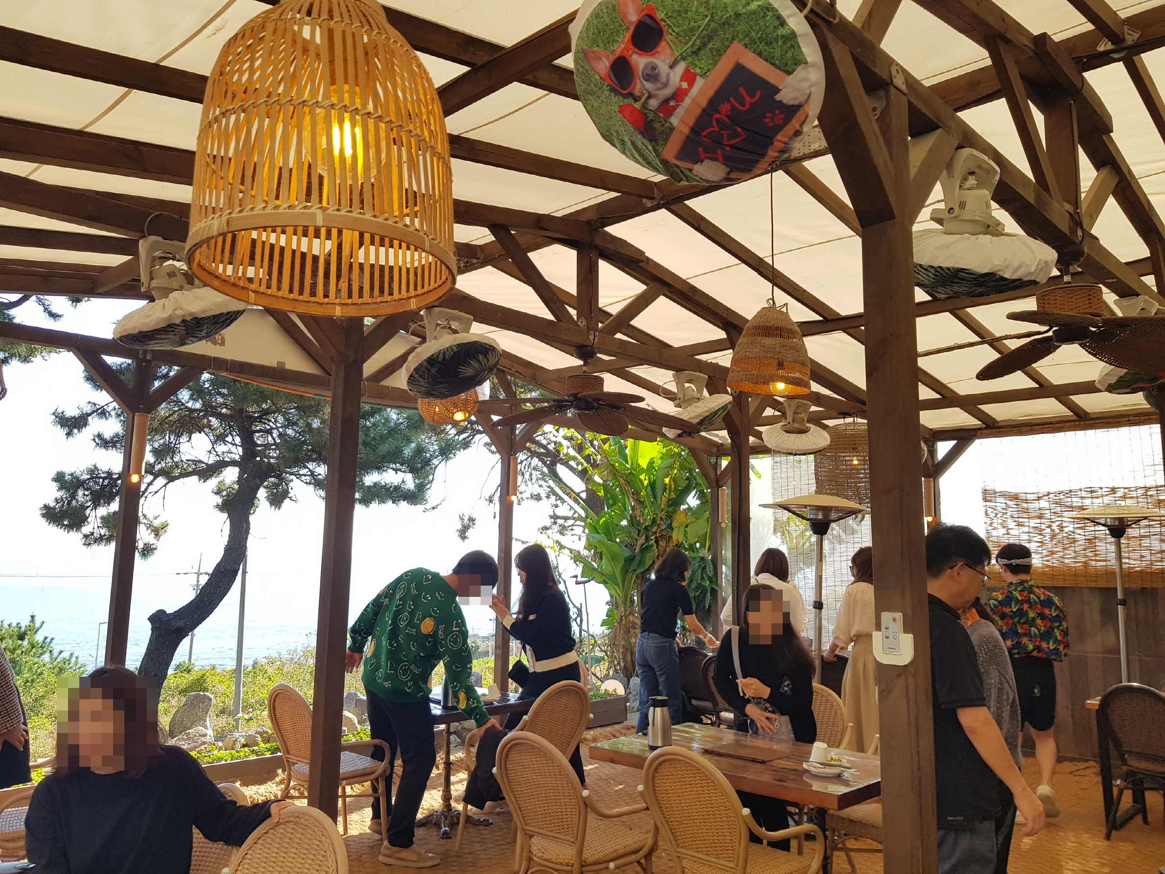 실내에도 테이블이 있지만 사람들은 바다가 훤히 내다보이는 야외 테라스를 선호한다.