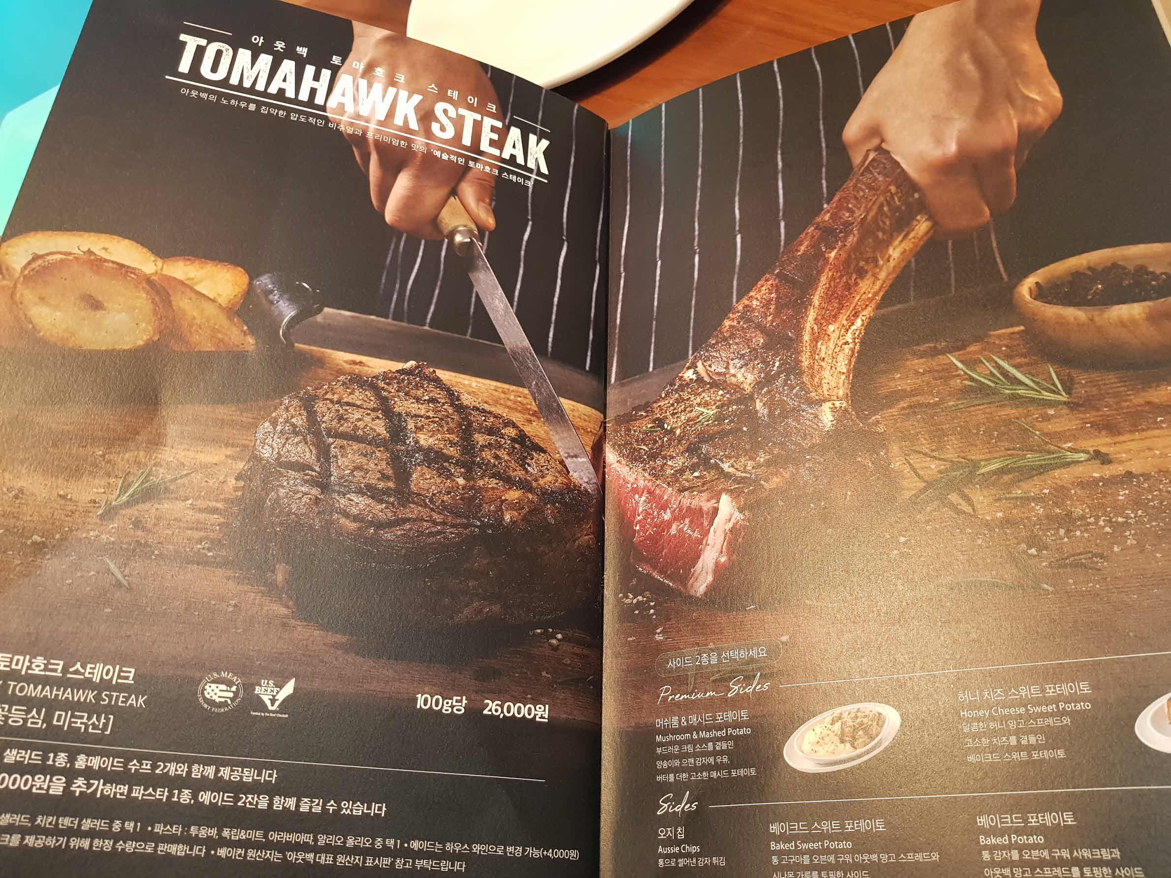 포터하우스와 토마호크를 2인이 먹으려면 20만원 정도의 가격이다.
