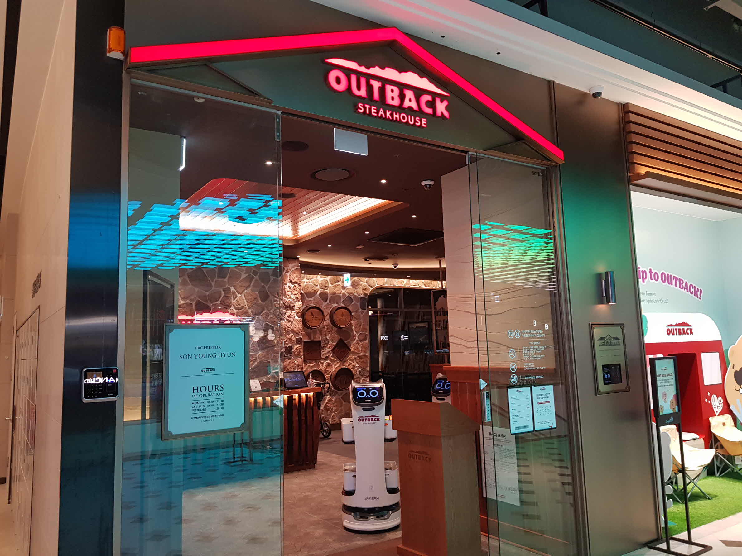 아웃백에 가면 이렇게 입구 앞에서 서빙 로봇이 두 눈을 뜨고 반겨준다. 아웃백에서는 직원들의 친절한 안내와 정감있는 서비스가 인상 깊었었는데 여기서 서빙 로봇을 보니 새로운 기분이 들었다.