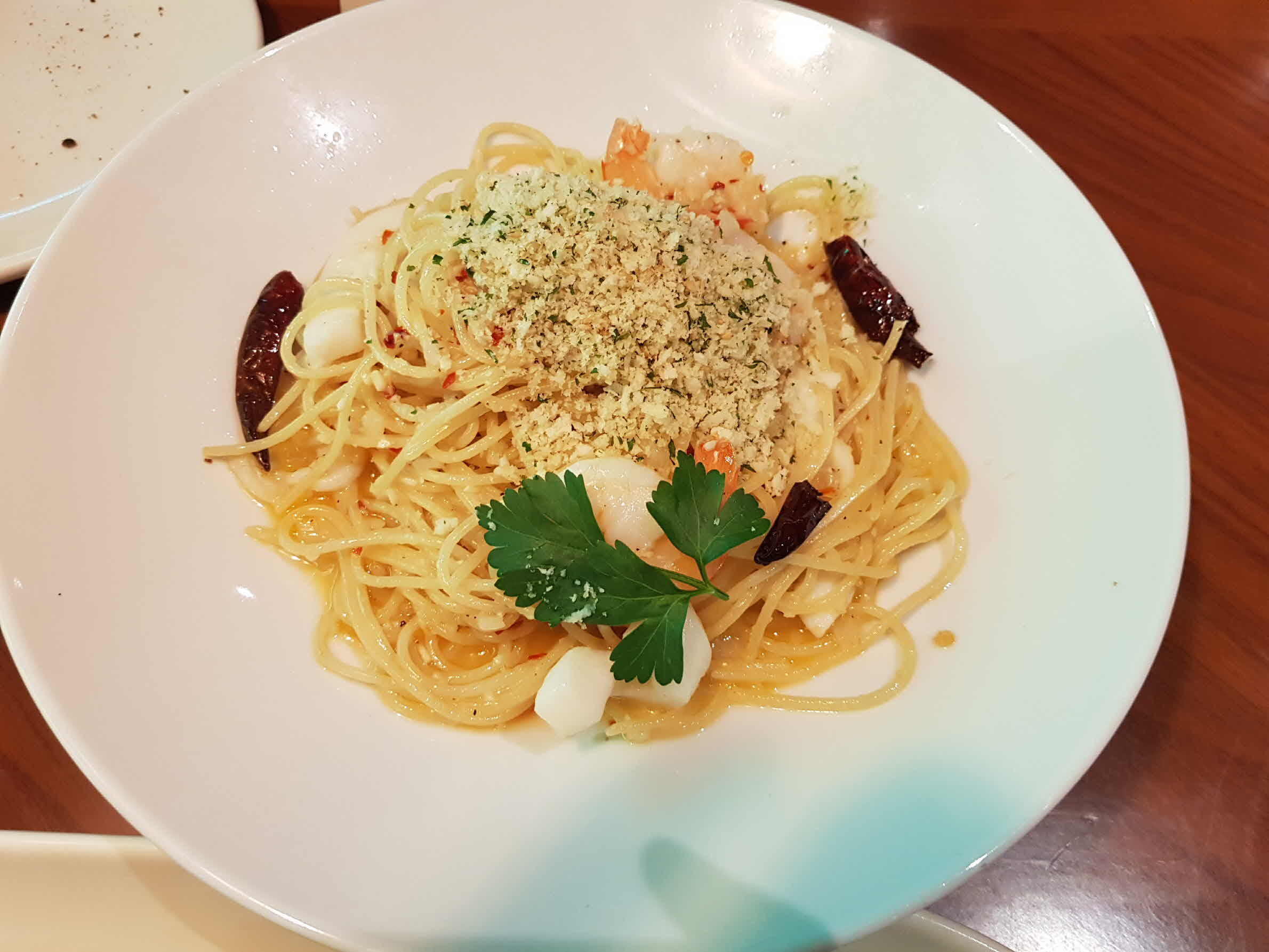 해물 알리오 올리오 파스타. 통통한 해산물과 매콤한 맛이 어우러져 느끼하지 않고 마지막까지 깔끔하게 먹을 수 있었다.