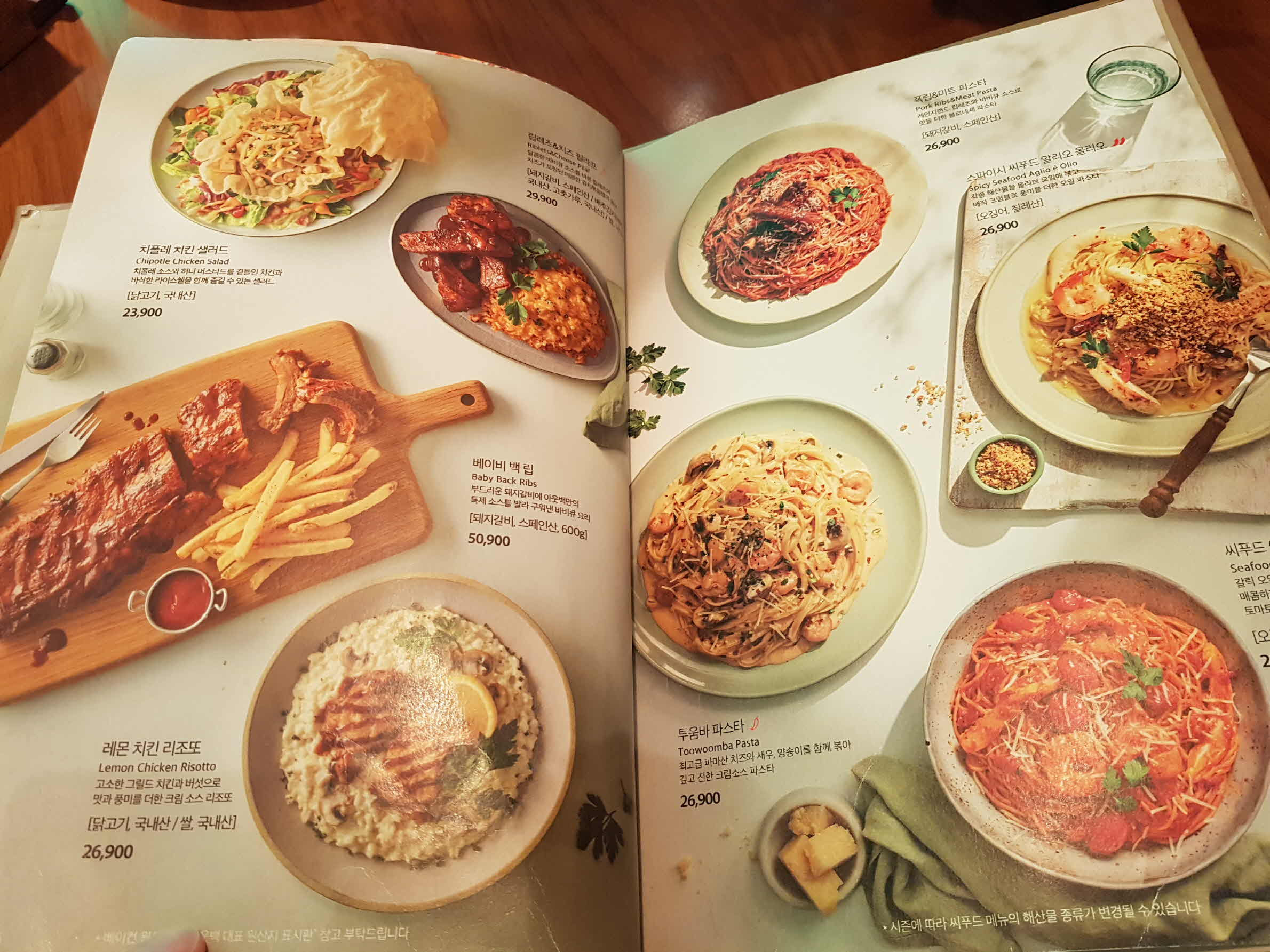 런치 메뉴중에서 베이비 백립과 씨푸드 알리오 올리오 스파게티로 선택한다.