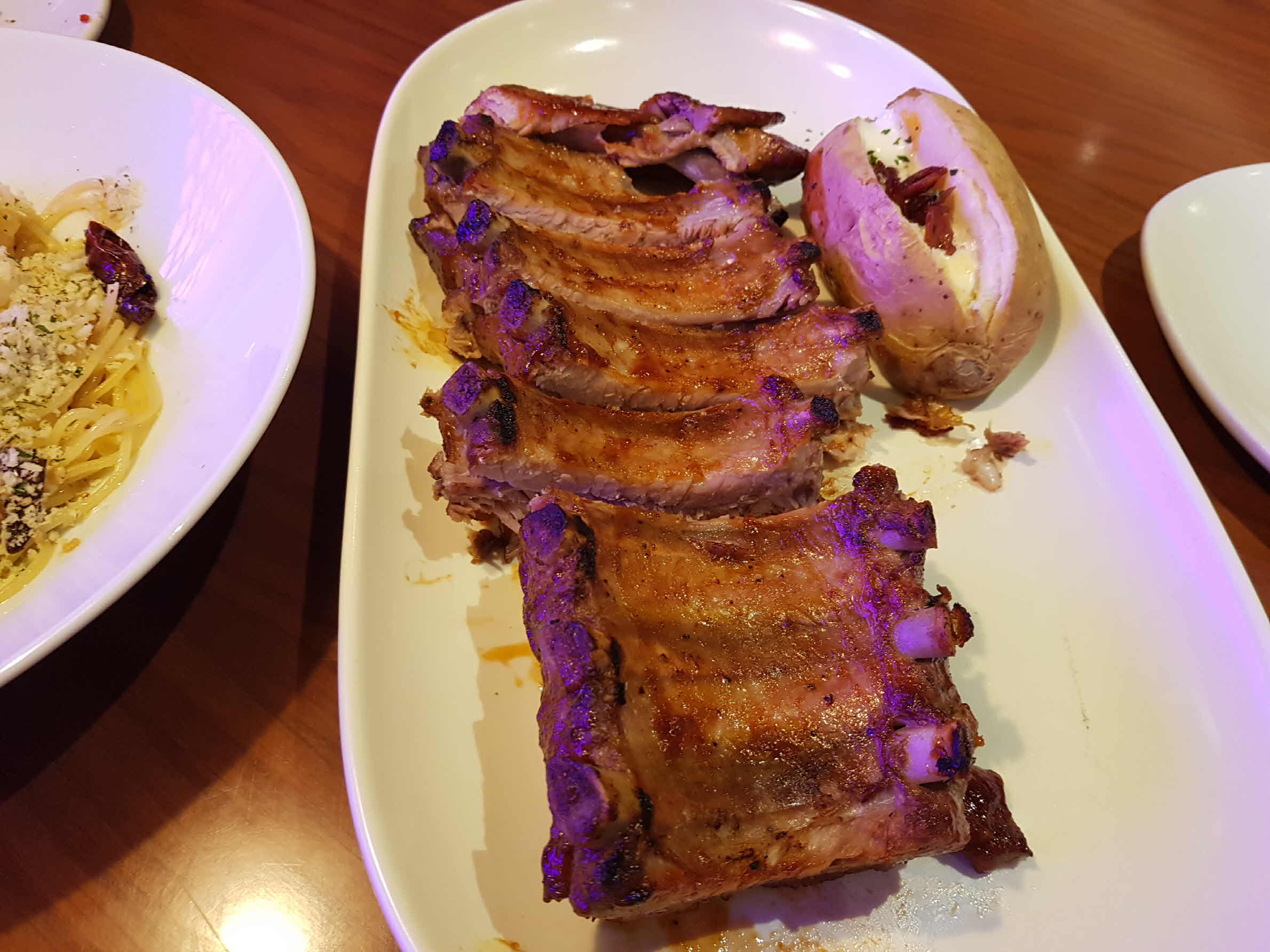 두 메뉴를 주문해 먹었는데 파스타도 립도 양이 생각보다 많았다. 식전 부시맨 빵과 스프를 먹지 않았으면 다 먹을 수 있었을까 싶다.