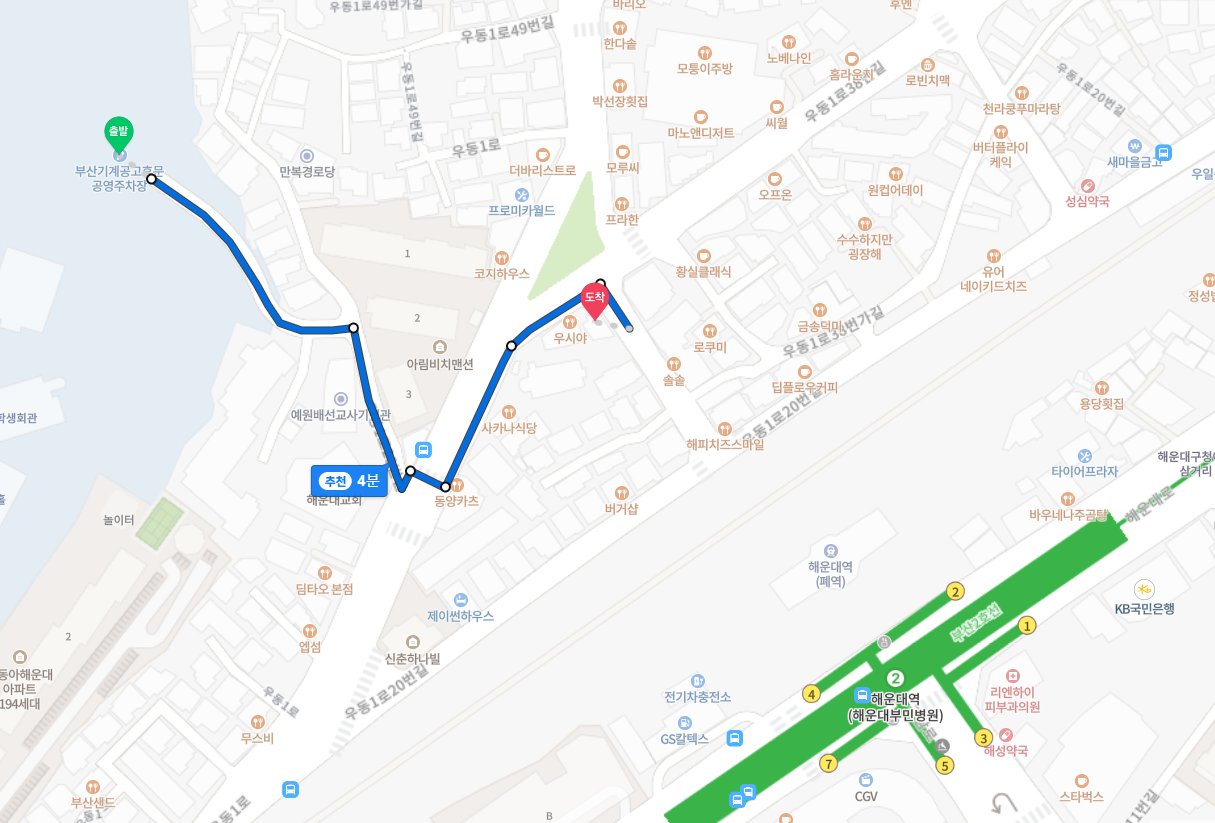민영주차장이 요금이 비싸기 때문에 기다리는 시간이 조금은 덜했고, 더불어 해리단길과 해운대에서 거리상 더 가깝다는 장점이 있었다.