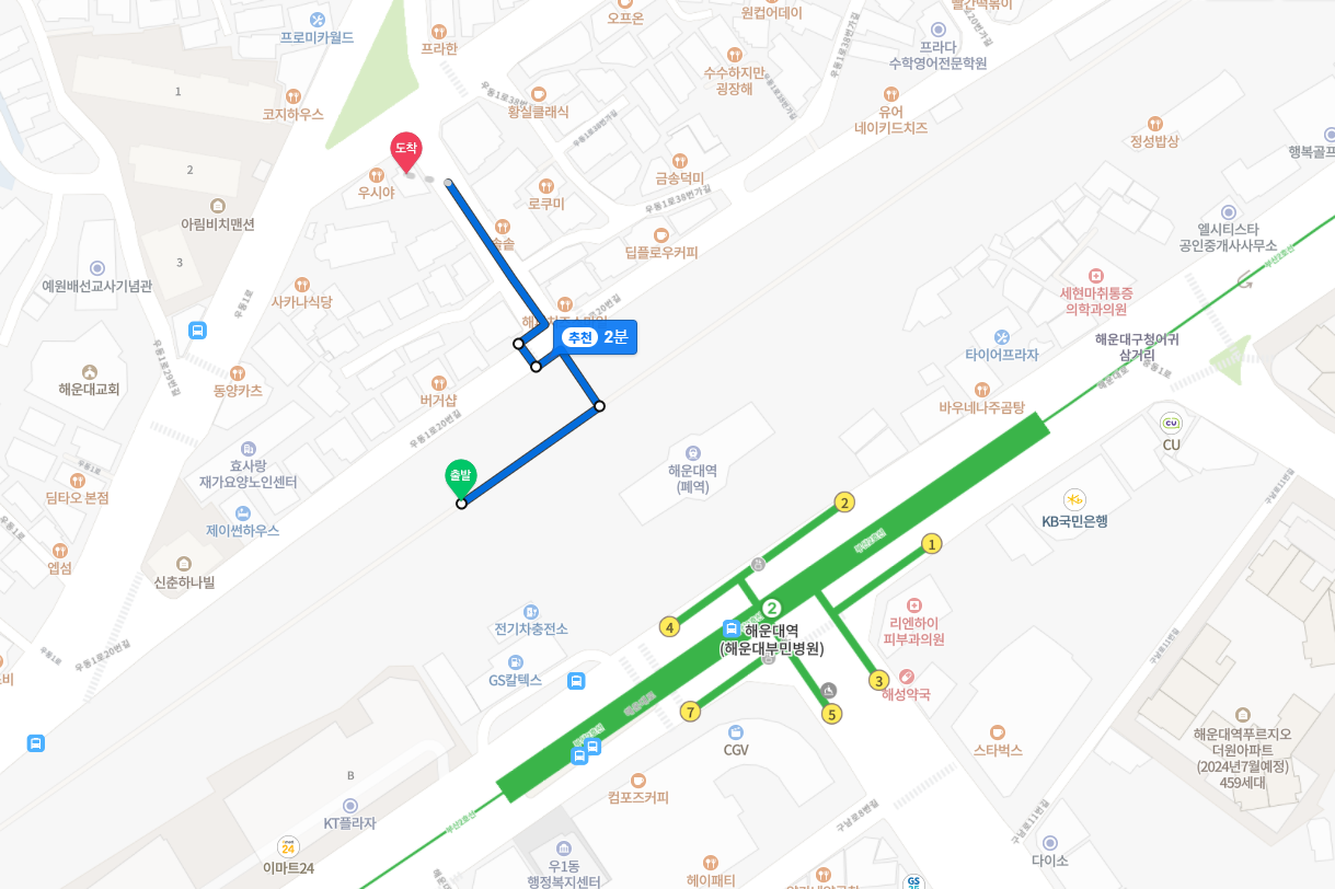 민영주차장에서 해리단길까지는 걸어서 2분이면 간다. 그리고 해운대역과 가깝고 해운대 해변까지도 가까워 위치로는 더 할나위 없이 좋다.