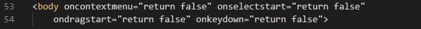 <body oncontextmenu="return false" onselectstart="return false" ondragstart="return false" onkeydown="return false">