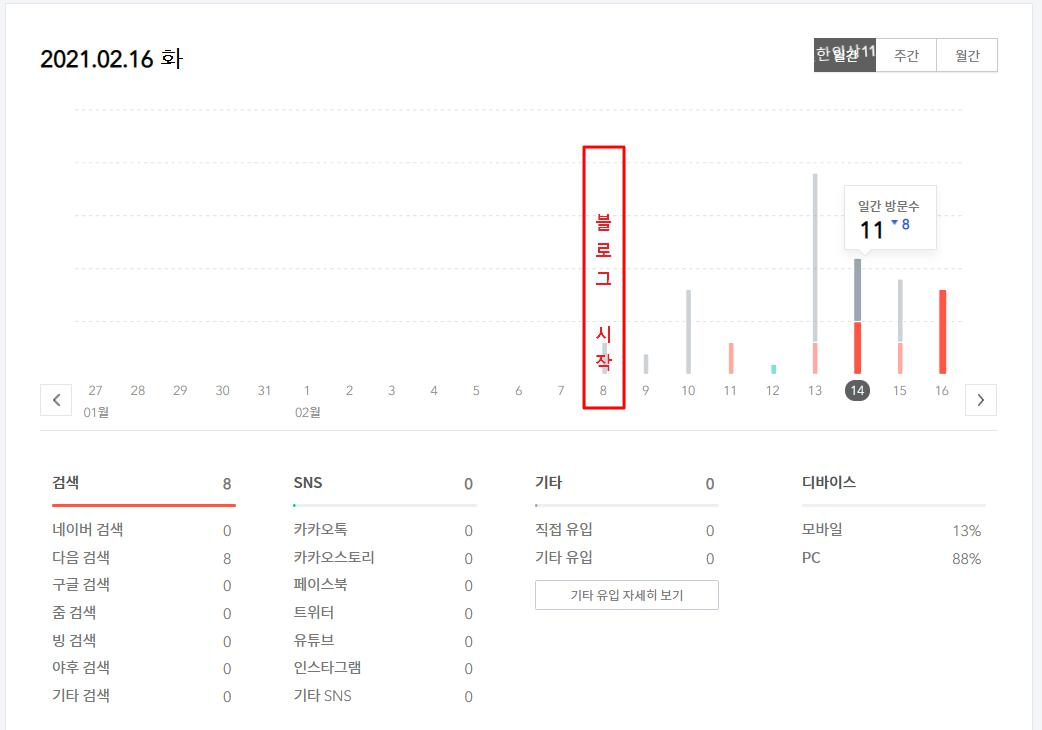 블로그를 시작한지 한달이 채 안되었을 당시 발행 글 수 31개 였으며 구글 애드센스를 신청했다. 당시 일 방문자수는 평균 20명 정도 되었다.