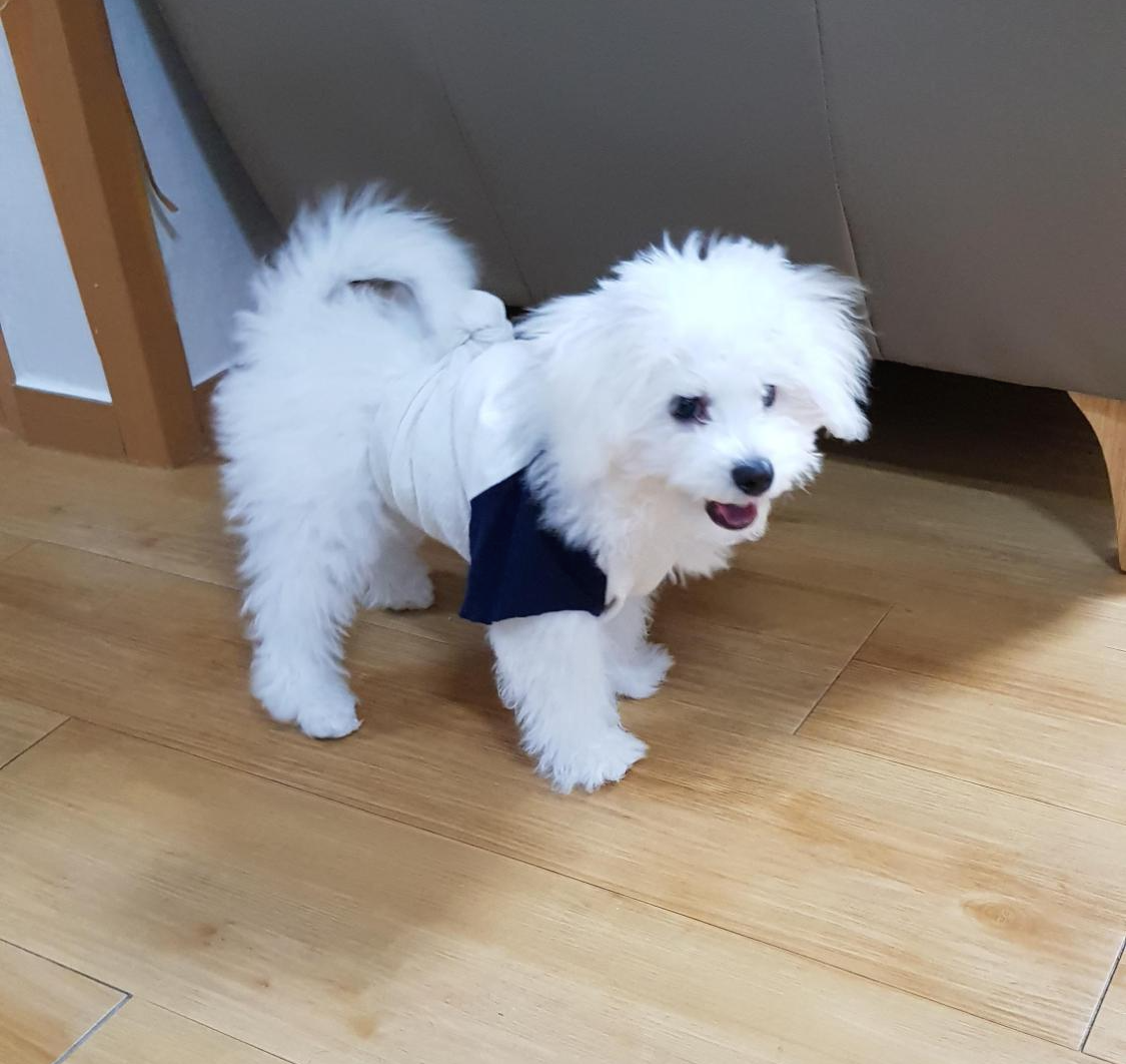 첫번째 베넷미용보다는 충격이 덜했지만 그래도 미용전의 귀여움까지 깍여나간건 여전하다. 전체적으로 뽀송해진 느낌과 발에 벙어리장갑을 낀것 같은 모양이 깍여나간 귀여움을 커버해준다.