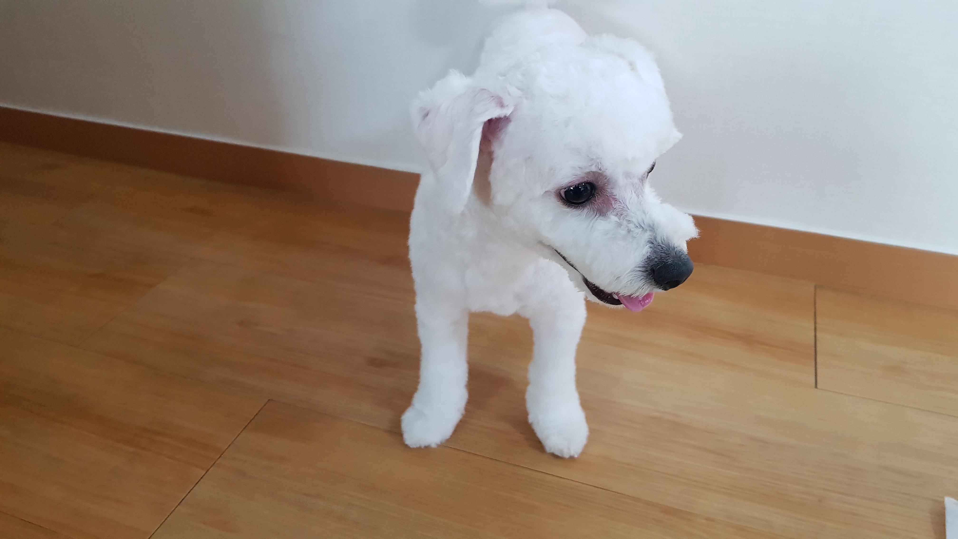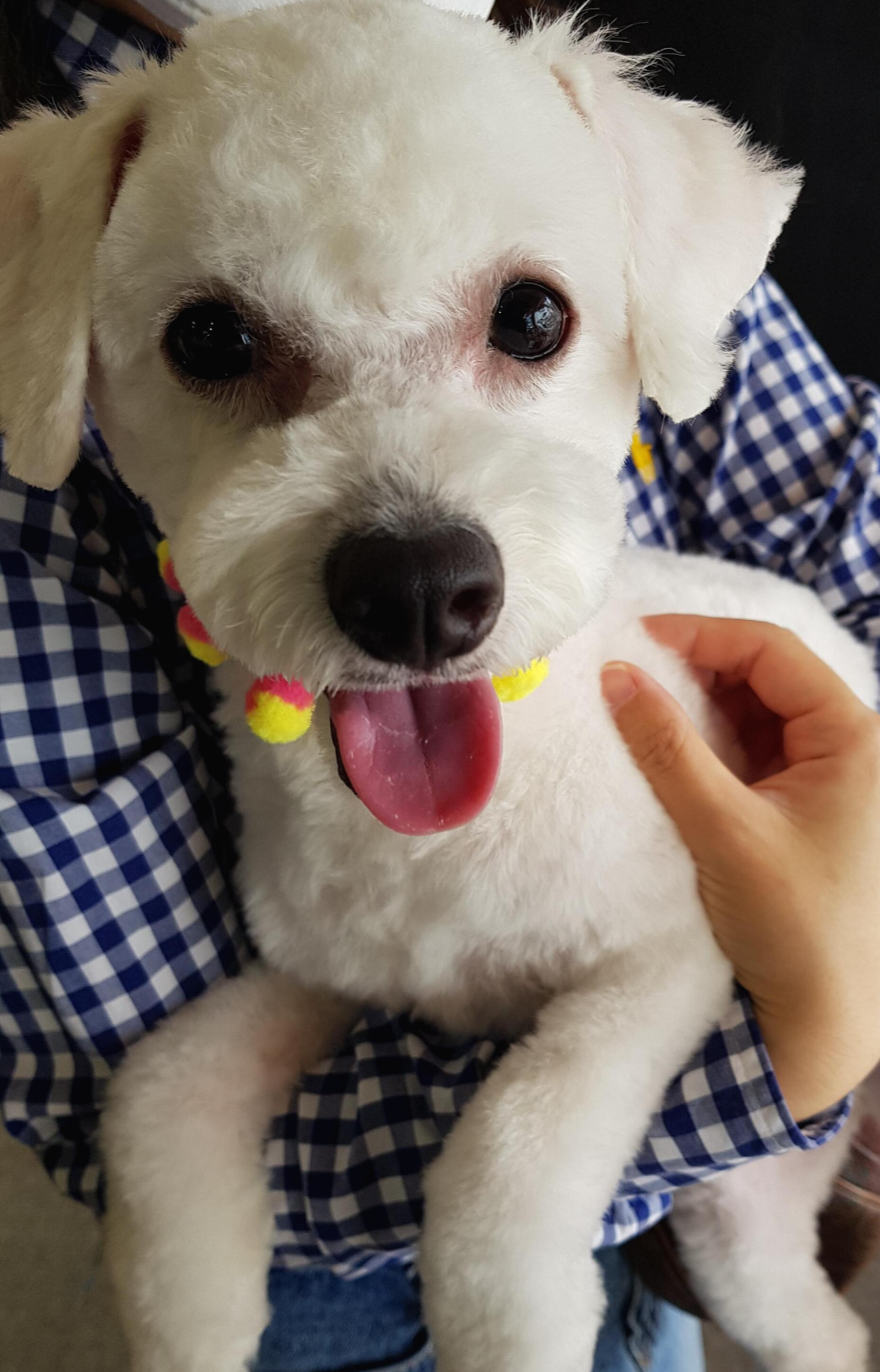긴 털효과인 귀여움과 순박함보다는 산책 후 씻기는데 불편함과 배변후의 위생적인 뒤처리를 위해서 그리고 눈물자국이 다시 생기지 않게 하기 위해서 세번째 미용을 하게 되었다. 털을 길게 남기려면 가위컷을 해야하는데 가위컷은 시간이 2~3시간정도로 오래걸린다. 이건 사람도 힘들지만 반려견에게는 고문같은 시간일 것이다. 털을 짧게 해야하지만 바리깡으로 밀면되 미용시간이 1시간 30분 정도로 그나마 짧게 걸리는 올빡으로 털을 깍게 되었다.