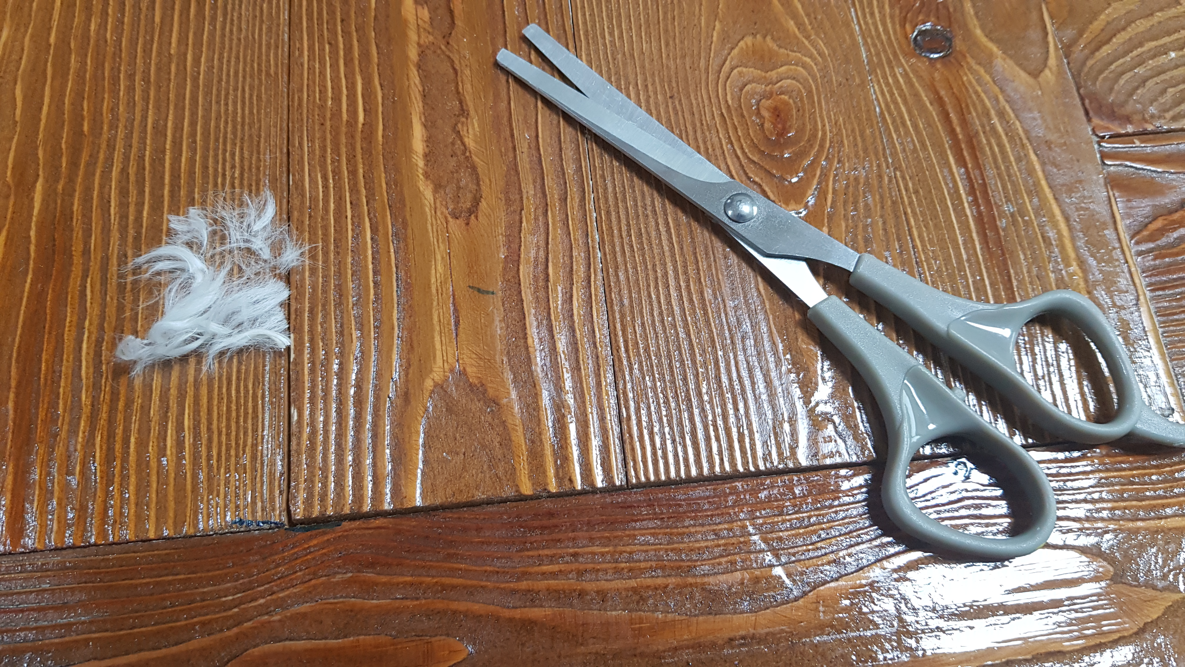 곱슬거리는 털이 자라 이렇게 뽀족하게 말려서 눈을 찌른다. 그러면서 눈물도 많이 흘리고 눈꼽도 많이 끼게되었다. 안되겠다 싶어서 집에 있는 미용가위로 눈주변 털을 잘라주기로 한다.