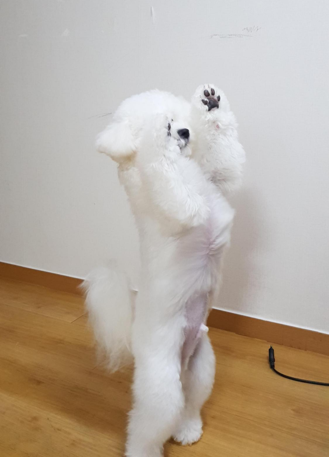 장점에 넣을까 하다가 단점으로 꼽아 보았다. 왜냐하면 에너지가 넘쳐 풀어놓으면 무한정 놀 수 있는 체력이 갖춰져 있어 적절히 에너지를 소비시켜 주지 않는다면 스트레스가 쌓여 반려견에게도 견주에게도 좋지 않은 점으로 부각 될 수가 있어서이다. 비숑타임이라고 하는데 필자네 비숑도 처음 울타리 적응을 할때 새끼 강아지인데도 넘쳐나는 에너지를 해소하지 못해 울타리 안에서 비숑타임을 거의 매일 시전하곤 했었다. 요즘도 산책을 3일정도 안나간다면 끓어오르는 에너지를 주체하지 못 하고 그르렁 거리며 흰 총알이 집안을 날아 다닌다.