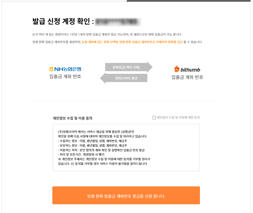 빗썸 원화 입출금 계좌번호가 발행 되었다.